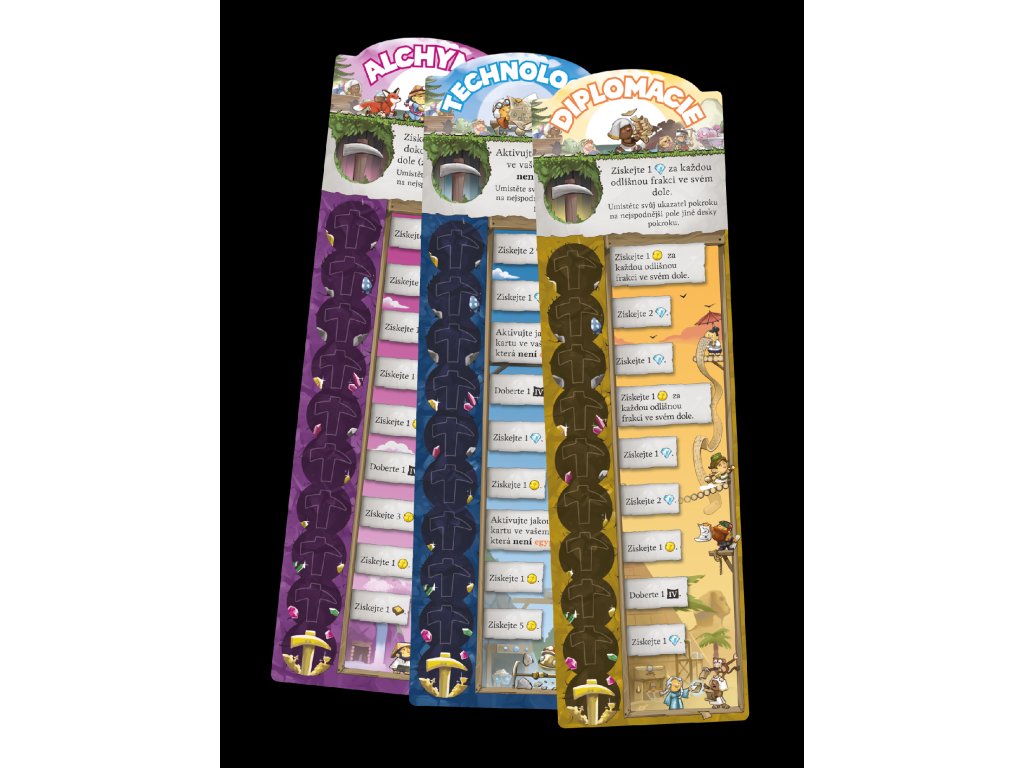 Horníci impéria je rychlá hra založená na principu umísťování karet, ve které soupeříte o to, kdo vybuduje nejvýnosnější důl! V každém kole všichni současně hrajete a aktivujete karty, což následně spouští řetězové reakce. Volbou těch nejvhodnějších karet z jednotlivých frakcí můžete stvořit úžasná komba a získat z nich co nejvíce bodů a bohatství. Po 10 kolech vyhrává hráč s nejvíce vítěznými body!