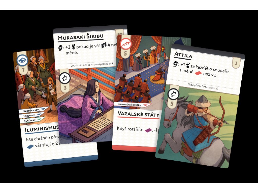 - Vyberte si kostky. . . ale pozor! Pokud celková hodnota přesáhne 10, zvýší se NEPOKOJ vaší civilizace.