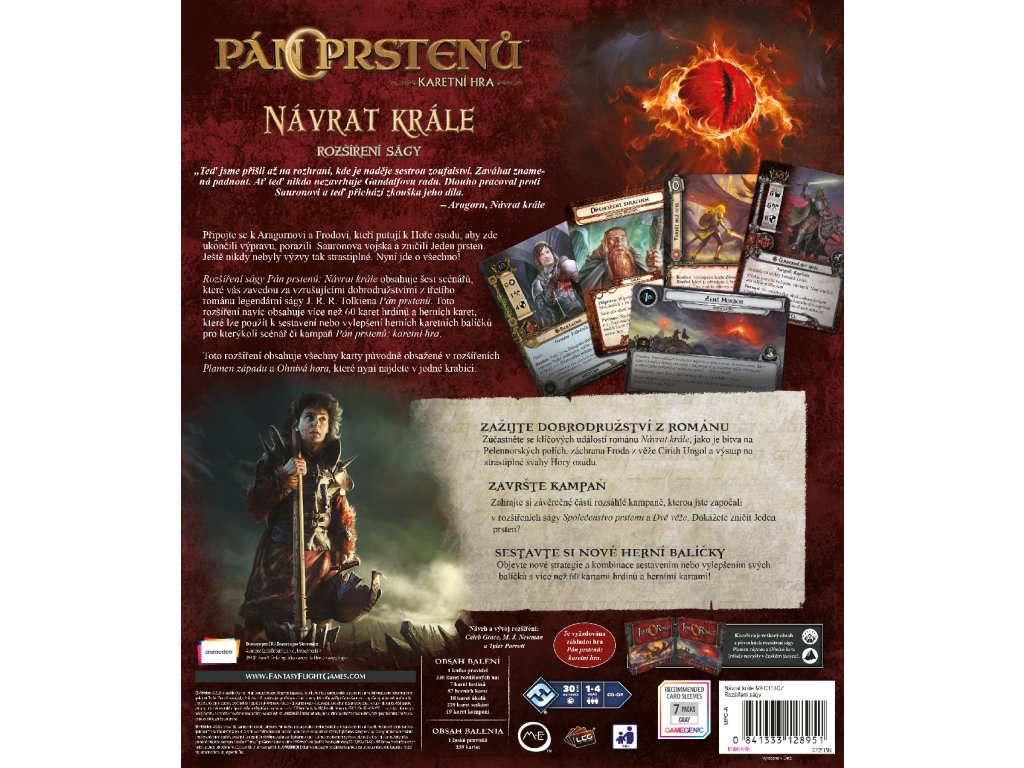 Rozšíření ságy Pán prstenů: Návrat krále obsahuje šest scénářů, které vás zavedou za vzrušujícími dobrodružstvími z třetího románu legendární ságy J. R. R. Tolkiena Pán prstenů. Toto rozšíření navíc obsahuje více než 60 karet hrdinů a herních karet, které lze použít k sestavení nebo vylepšení herních karetních balíčků pro kterýkoli scénář či kampaň Pán prstenů: karetní hra.
