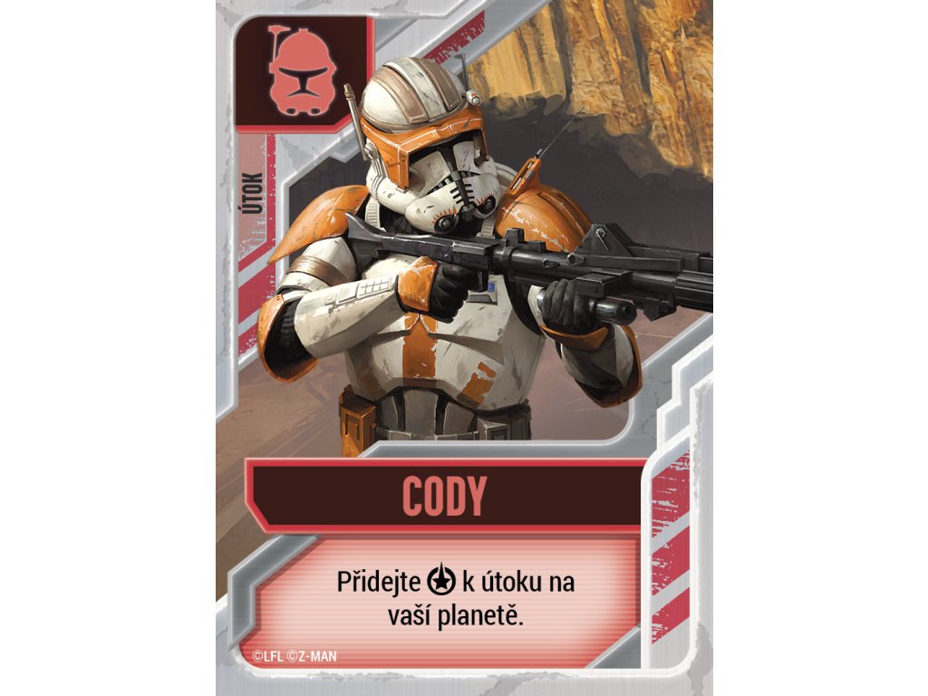 Rozhodněte tento zničující konflikt ve hře Star Wars: Klonové války založené na herním systému Pandemic. V roli legendárních Jediů podpořte své spojence a ve čtyřech vzrušujících scénářích se postavte legiím bitevních droidů a jejich zákeřným vůdcům. Využijte své unikátní schopnosti a Sílu a spolupracujte při plnění misí, které jednou provždy ukončí Klonové války.