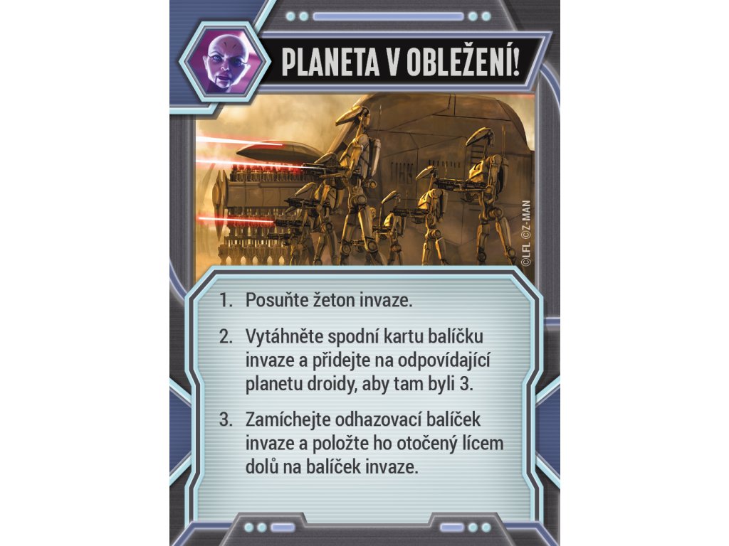 Ve hře Star Wars: Klonové války založené na herním systému Pandemic, se spojí slavní generálové Jediů, aby vedli týmy klonů proti oddílům separatistických droidů. Využije schopnosti svých Jediů a klonů, abyste se probojovali záplavou droidů a spolupracovali při plnění misí, které mohou zvrátit průběh války.