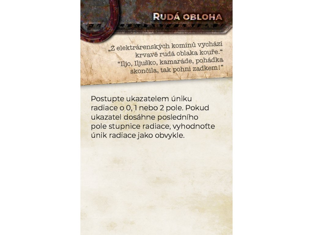 Zóna je dobrodružná desková hra, která se odehrává v černobylské zakázané zóně. Ujímáte se rolí mrchožroutů, kteří čelí pokroucené realitě radioaktivní pustiny: Zóny. Putujete oblastí a pátráte po hodnotných artefaktech a fungujícím vybavení, které by vám mohlo pomoci překonat nástrahy na vaší cestě do jaderné elektrárny a odhalit tajemství Černobylu.
