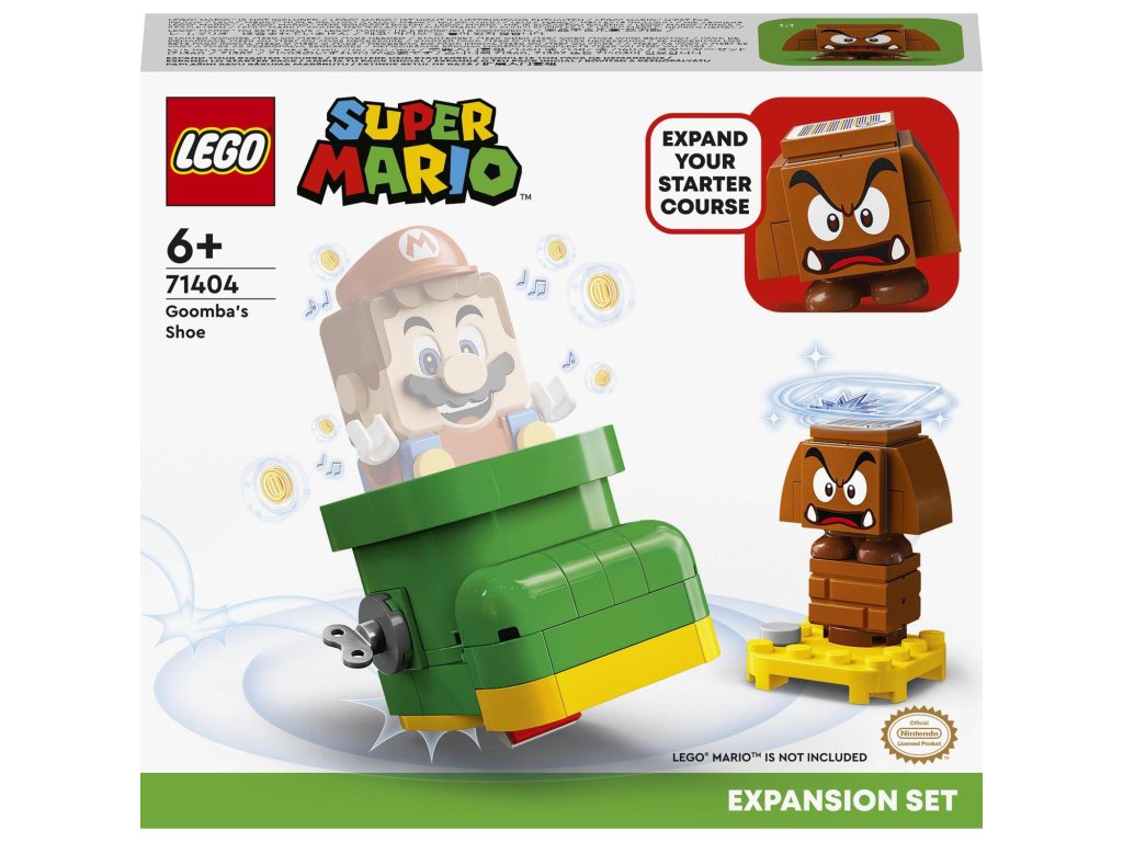 Prožívejte zábavná dobrodružství ve světě LEGO® Super Mario™ s rozšiřujícím setu Goombova bota (71404), který je určen dětem od 6 let. Set obsahuje sestavitelnou verzi Goombovy boty z kostek a figurku LEGO Goomby, kterou děti mohou využít ve svých herních úrovních. Zmocněte se boty s LEGO® Mariem, LEGO® Luigim nebo LEGO® Peach™ (figurky nejsou součástí balení) a získávejte digitální mince za skákání a předvádění triků ve vzduchu. (Poznámka: Pro plnohodnotný interaktivní herní zážitek je vyžadován startovací set 71360, 71387 nebo 71403.)