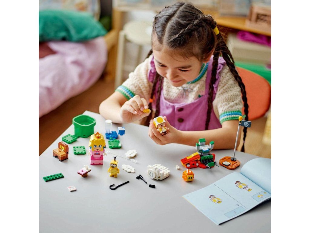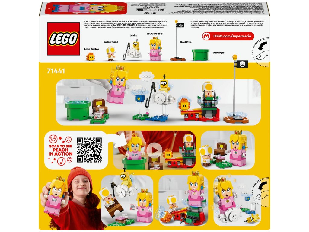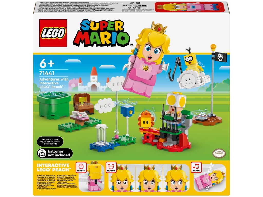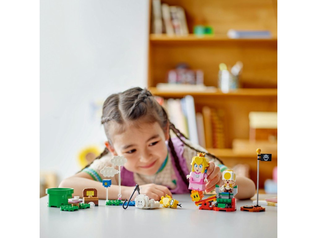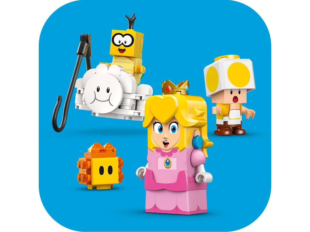 Vydejte se na piknik s kultovní postavou ze světa Super Mario™ s interaktivní princeznovskou stavebnicí LEGO® Peach™ (71441), kde se můžete také proletět na obláčku a zachránit Žlutého Toada. Tento parádní dárek Nintendo® pro holky, kluky a hráče od 6 let obsahuje interaktivní figurku LEGO® Peach™ a navíc Lakita, Žlutého Toada a Lava Bubble. Cestujte od startovacího potrubí až k cílové vlaječce a cestou spouštějte digitální reakce LEGO® Peach™ a sbírejte mince. Udělejte si piknik, přečtěte si dopis, ve kterém stojí, že Žlutý Toad byl polapen, svrhněte Lakita z obláčku a cestou na záchranu Žlutého Toada létejte a předvádějte smyčky a salta na obláčku. Sestavitelný model obláčku obsahuje také rybářský prut, kterým může Lakitu doslova unéstŽlutého Toada i s jeho piknikovým křeslem. Návod na stavění najdete v krabici nebo v aplikaci LEGO® Super Mario™. Pro ještě větší dobrodružství zkombinujte modely a postavy z tohoto setu s jinými sety z rozsáhlého sortimentu řady LEGO Super Mario. Rozměry – Modul obláčku v tomto setu z 208 dílků měří 11 cm na výšku, 11 cm na šířku a 7 cm do hloubky
