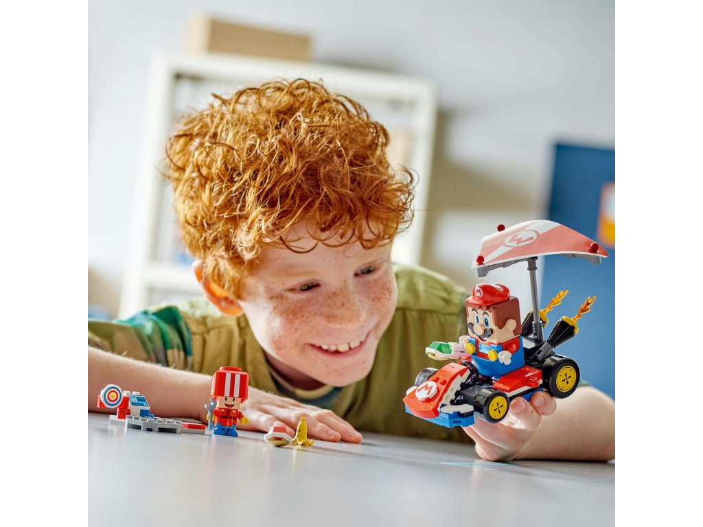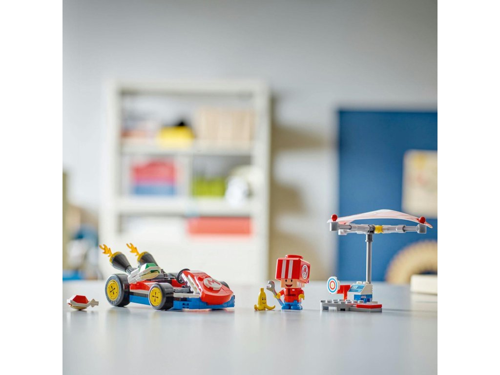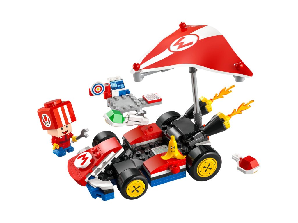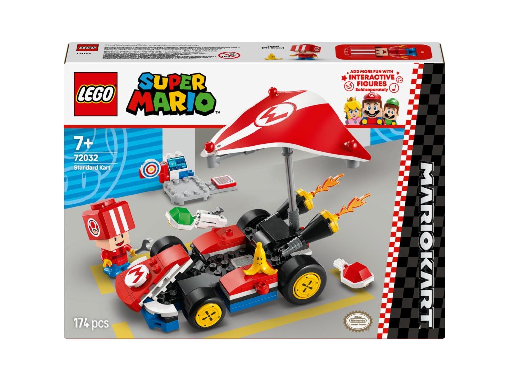 Připravte se na závodění, driftování a klouzání v motokáře Standard Kart s tímto setem pro děti (72032). Tento strhující narozeninový dárek LEGO® Super Mario™ pro kluky, holky a gamery od 7 let obsahuje sestavitelný model Standard Kart z videohry Mario Kart™, pracovní stanici s terčem a figurku Toada (Pit Crew) v červené uniformě posádky. Standard Kart se pyšní odnímatelným Super Gliderem, koly, která umožňují driftování, a funkcí střílení krunýřů na cíl na pracovní stanici. Jezděte na motokáře s figurkou LEGO® Mario™, LEGO® Luigi™ nebo LEGO® Peach™ (ze setů 71439, 71440 nebo 71441 – prodávají se samostatně) pro interaktivní hraní, včetně zvukových efektů pro start závodu, troubení a driftování, a dupněte na Akční prvek v pracovní stanici pro ještě více digitálních reakcí. Tento sběratelský set Nintendo® se skvěle hodí k samostatnému i společnému hraní. Nenechte si ujít další vozidla z řady LEGO Super Mario: Mario Kart (prodávají se samostatně), se kterými můžete závodit.