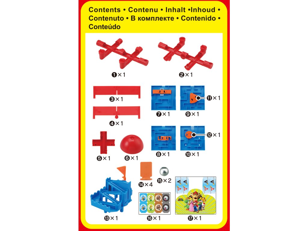 Při každém hraní nové bludiště! Užijte si pokaždé nový kurz změnou rozvržení bludiště! Pro více zábavy nahraďte destičky postav figurkami, které jste nasbírali z jiných hraček Super Mario™od Epoch Games! Nakláněním bludiště v různých směrech vyvalte míč na vrchol. Než se vydáte k cíli, nezapomeňte projít 4 kontrolními body. Rozměry: 25,5x25,5x9cm.