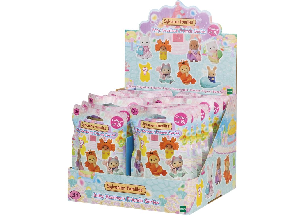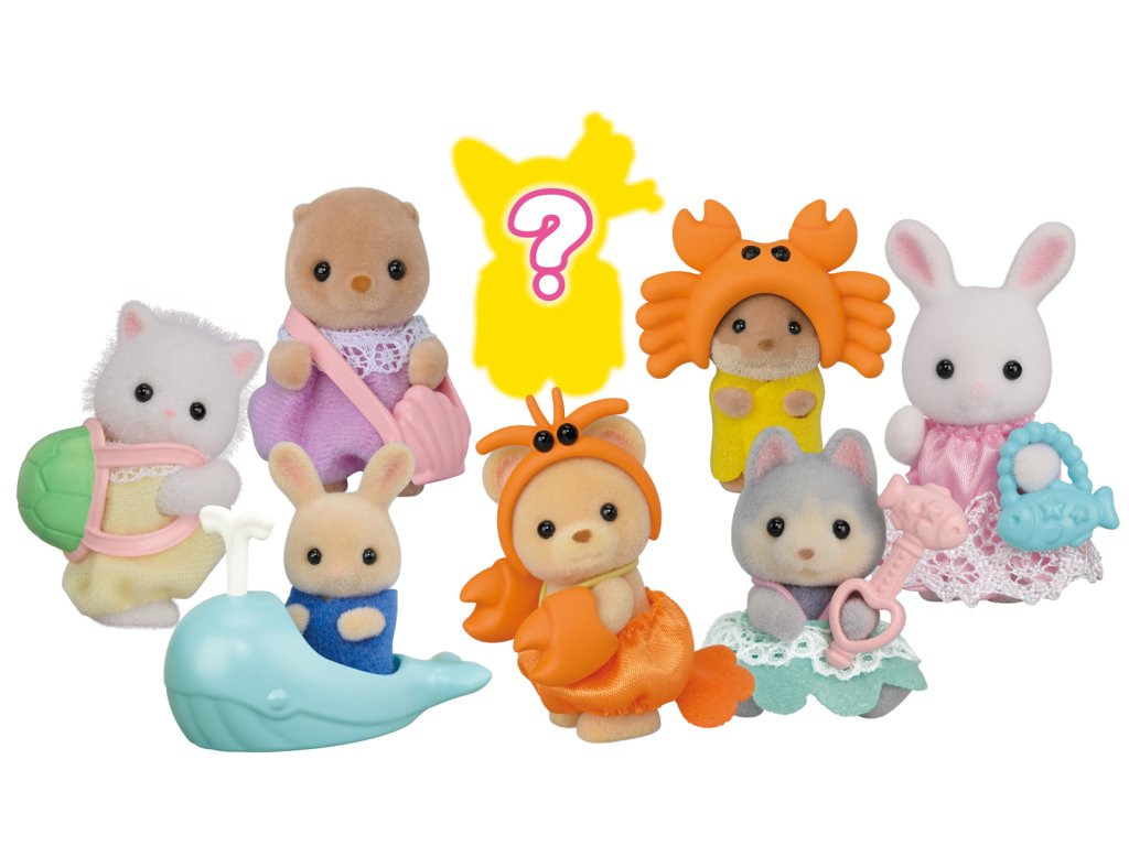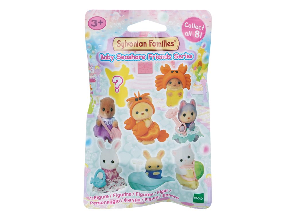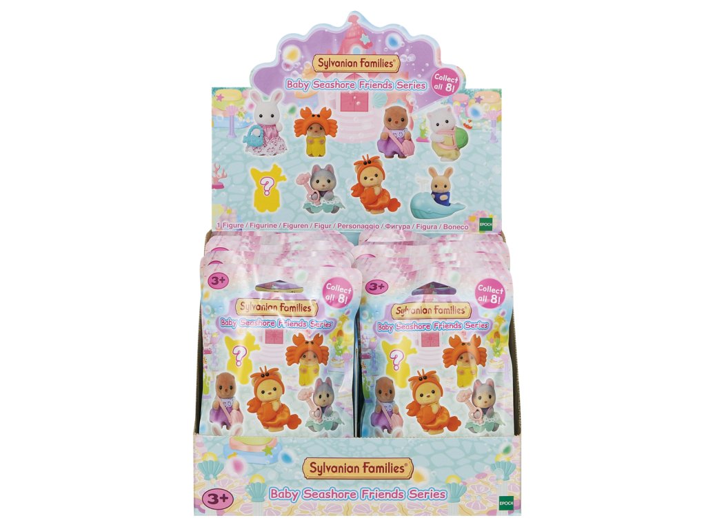Roztomilá batolata Sylvanian Families se vydávají hledat poklad ukrytý v paláci malých mořských víl. Sada obsahuje 8 různých figurek mláďat spolu s doplňky k sbírání nebo hraní. Figurky a doplňky ze sady lze kombinovat s dalšími sadami, domečky a příslušenstvím Sylvanian Families. Figurky mají pohyblivé hlavičky, ručičky a nožičky. Nasbírejte všech 8 figurek a představte si úžasné příběhy na téma moře a mořských aktivit. Kolekce obsahuje tyto figurky: Baby perská kočka a její želví krunýř, Baby křeček a jeho taška ve tvaru mušle, Baby vydra a jeho klobouk ve tvaru kraba, Baby sněžný králík a jeho taška ve tvaru modré ryby, Baby mléčný králík a jeho velryba, Baby medvěd a jeho kostým kraba, Baby husky a jeho růžové žezlo s rybou a Baby tajná figurka – překvapení. Každý sáček obsahuje jednu figurku. Assort je náhodný mix modelů. Výběr nelze ovlivnit. Baleno v sáčku. Rozměry sáčku: 15,5 x 10,2 x 2,3 cm. Věk: 3+