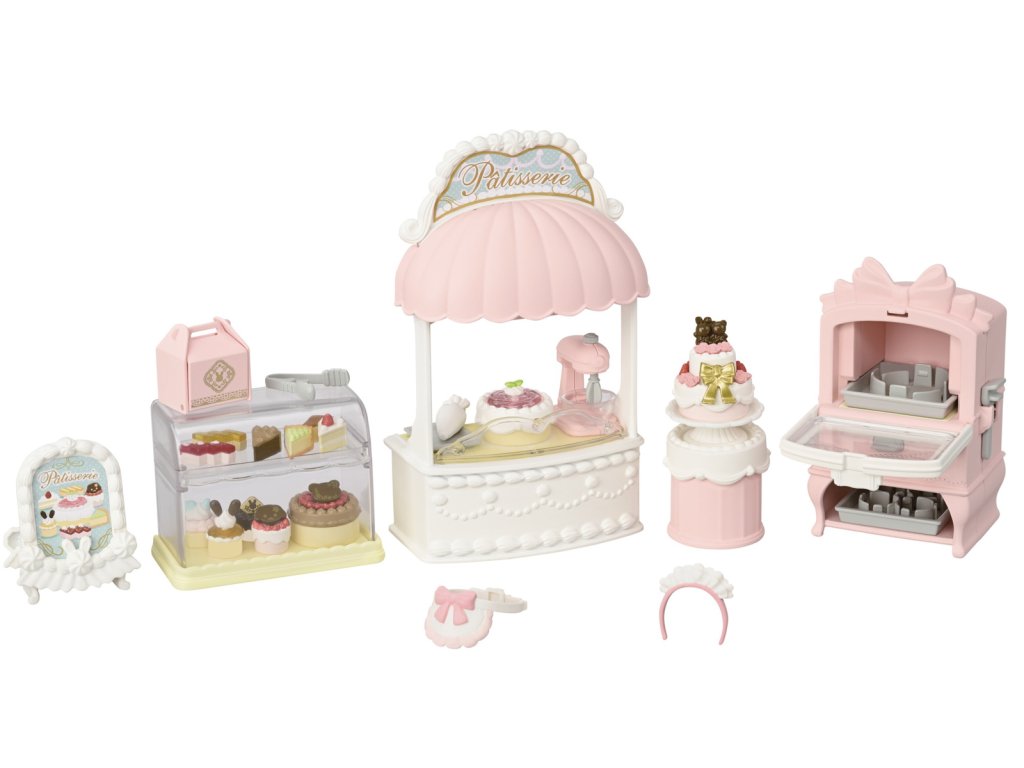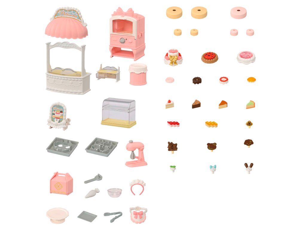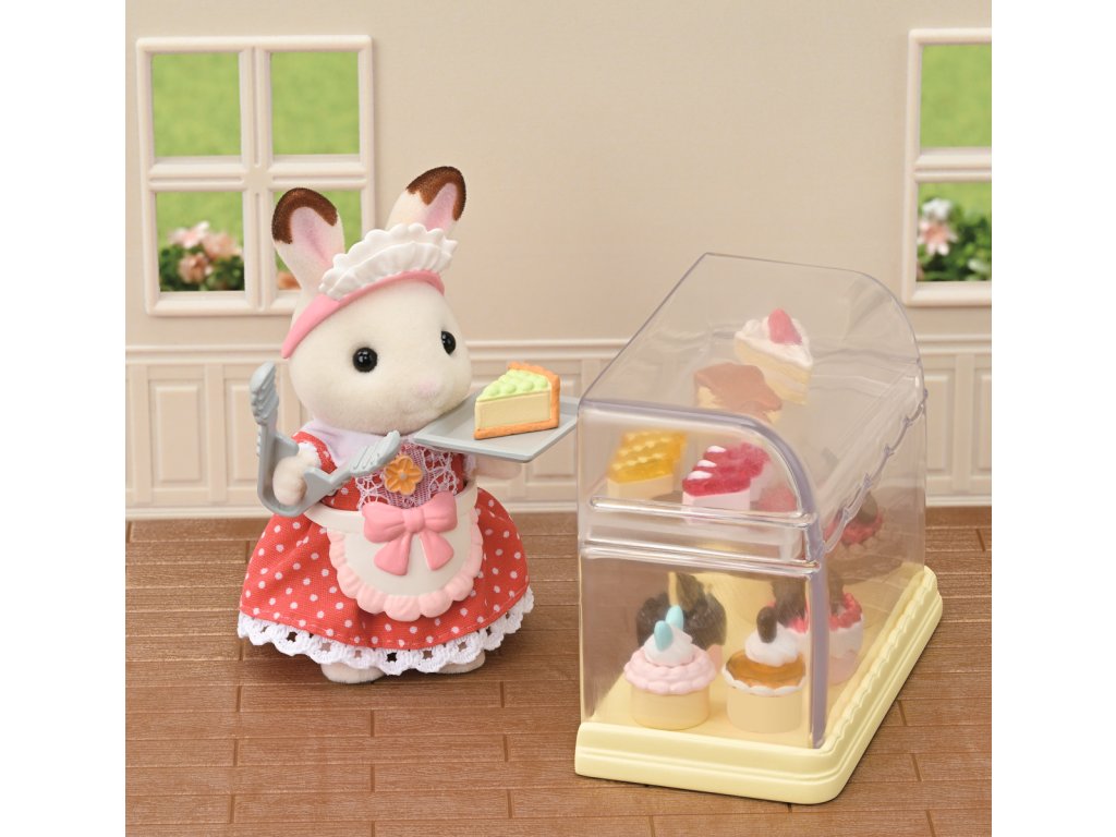 Zveme vás do cukrárny plné sladkostí, kde se sladké sny stávají skutečností. Sada obsahuje vybavení cukrárny a spoustu dortů, dekorací a dalších doplňků, které promění útulný venkovský domek (prodává se samostatně) v cukrárnu. Připevněte ceduli a markýzu nad dveře a zavěste nadýchané ozdoby do oken na půdě, aby se všichni obyvatelé ze Sylvanian Families dozvěděli, že cukrárna je již otevřena. Sada obsahuje troubu na pečení piškotů, bufet, vitrínu s policemi, podstavec na dort, mixér a plechy na pečení. V sadě najdete spoustu doplňků, širokou škálu sladkých krémů a ozdob na dorty, díky kterým můžete vytvořit více než 100 kombinací lahodných pečiv. Hotové dorty jsou elegantně vystaveny ve vitríně nebo v bufetu. Sladkosti lze bezpečně zabalit do krabičky pomocí kleští. Přesně jako v opravdové cukrárně! Sada obsahuje také elegantní zástěru a čelenku do vlasů. Hračky Sylvanian Families rozvíjejí představivost a povzbuzují děti k hraní rolí. Hra s figurkami rozvíjí kreativitu a učí emocím vytvářením a vyprávěním příběhů založených na každodenních zážitcích a pozorování světa. Baleno v krabičce. Rozměry balení: 29 x 29,5 x 6,5 cm. Věk: 3+