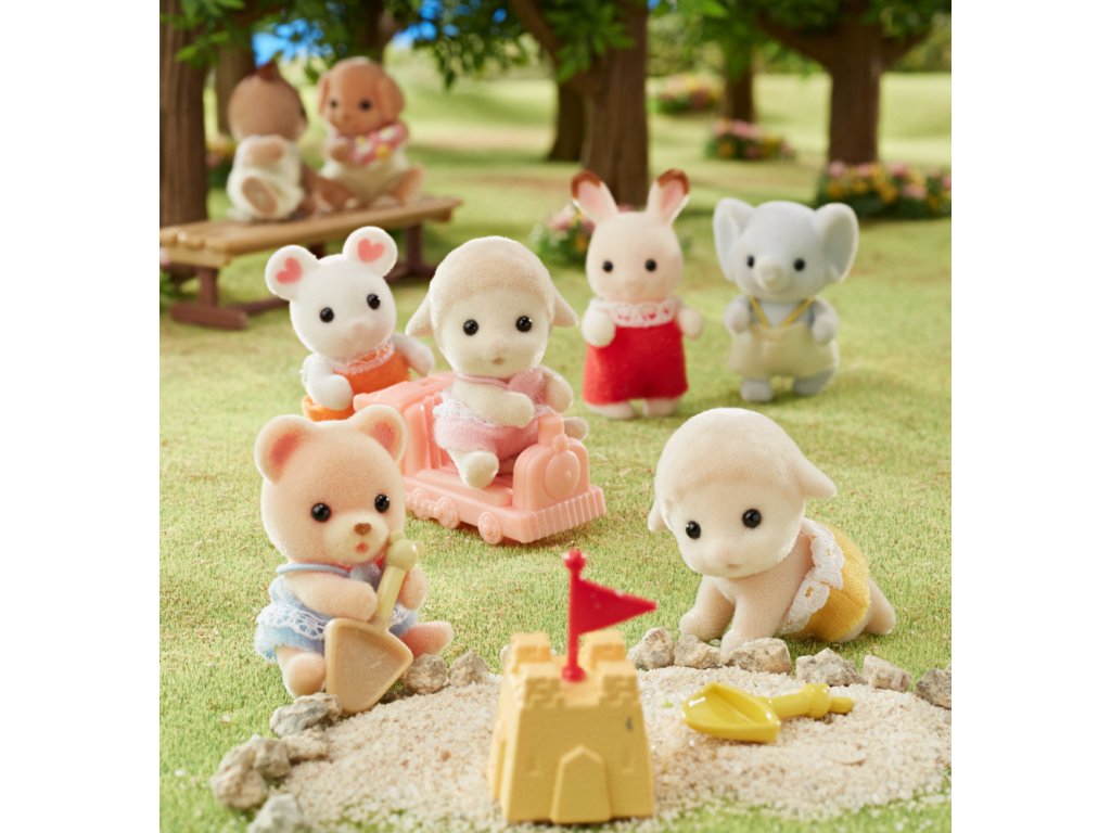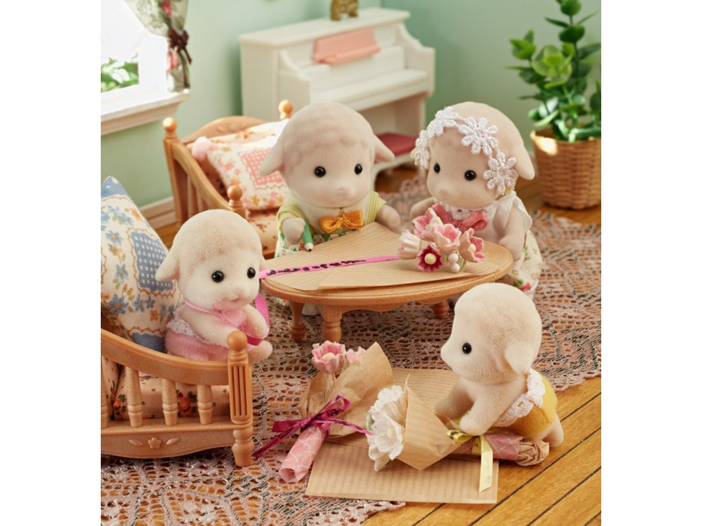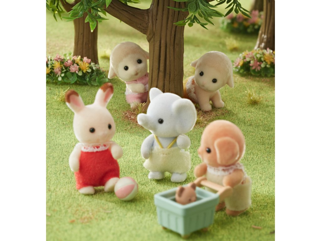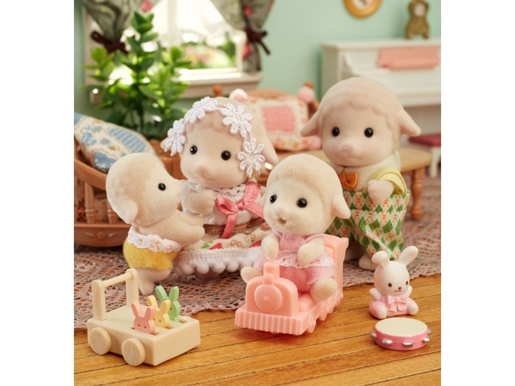 Sada Dvojčata ovečky. Jejich rodinka obsadila třetí místo ve volbách Sylvanian Family Election 2020! Obsahuje ovčí dvojčata Seana a Shonu (sedící a plazící se) a vozík. Na vozíku může jezdit kterékoli z dvojčat ovcí (sedící nebo plazící). Postavičky mohou otáčet hlavou. Kombinujte s ovčí rodinkou a ovčím miminkem (obojí se prodávají samostatně) pro zábavu s celou ovčí rodinkou. Nebo je zkombinujte s dalšími domy a nábytkem (prodávají se samostatně) pro ještě zábavnější a nápaditou hru. Stimuluje u dětí imaginativní hraní rolí. Věk: 3+