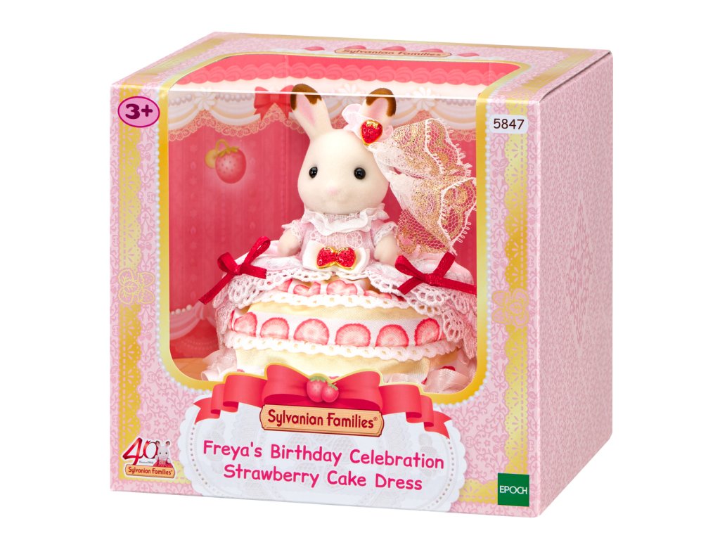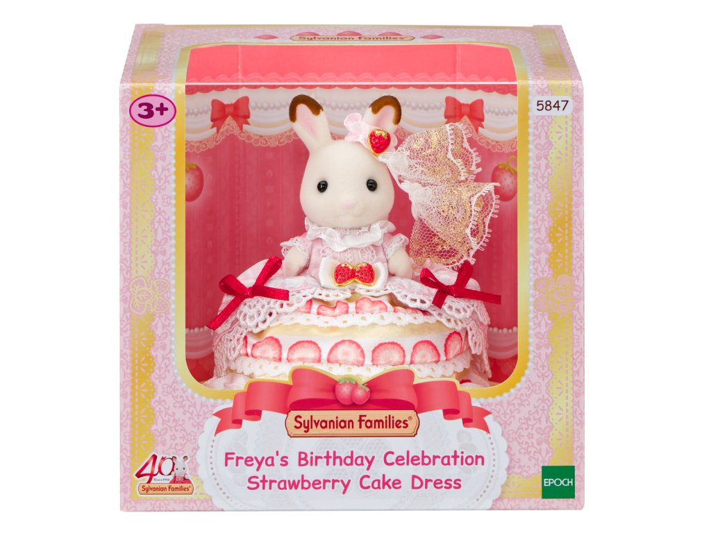 Oslavte 40. výročí Sylvanian Families s exkluzivní edicí, která představuje figurku čokoládové králičí dívky Freyi, oblečenou do nádherných šatů inspirovaných jahodovým dortem. Šaty mají vrstvy jemné bílé krajky, červenou stuhu a výrazné dekorace ve tvaru jahodových šperků v rubínově červené a zlaté barvě. Součástí balení je také židle, která doplňuje slavnostní vzhled celého exkluzivního 40th Anniversary balení. Hračky Sylvanian Families rozvíjejí představivost a povzbuzují děti k hraní rolí. Hra s figurkami rozvíjí kreativitu a učí emocím vytvářením a vyprávěním příběhů založených na každodenních zážitcích a pozorování světa. Vyznačují se nejvyšší kvalitou a výjimečným důrazem na detaily. Figurky Sylvanian Families jsou pokryté měkkým semišem, mají pohyblivé končetiny a hlavu. Oblečení lze z figurek sundat a vyměnit za jiný outfit. Baleno v krabičce. Rozměry balení: 13 x 14 x 11,5 cm. Věk: 3+