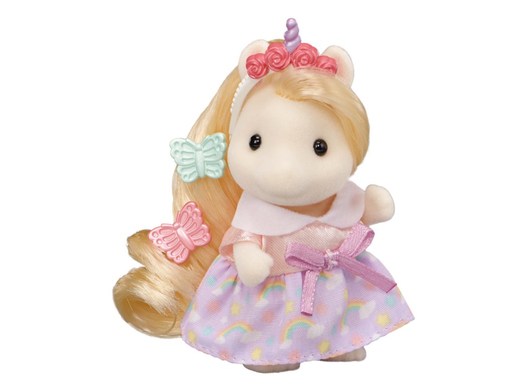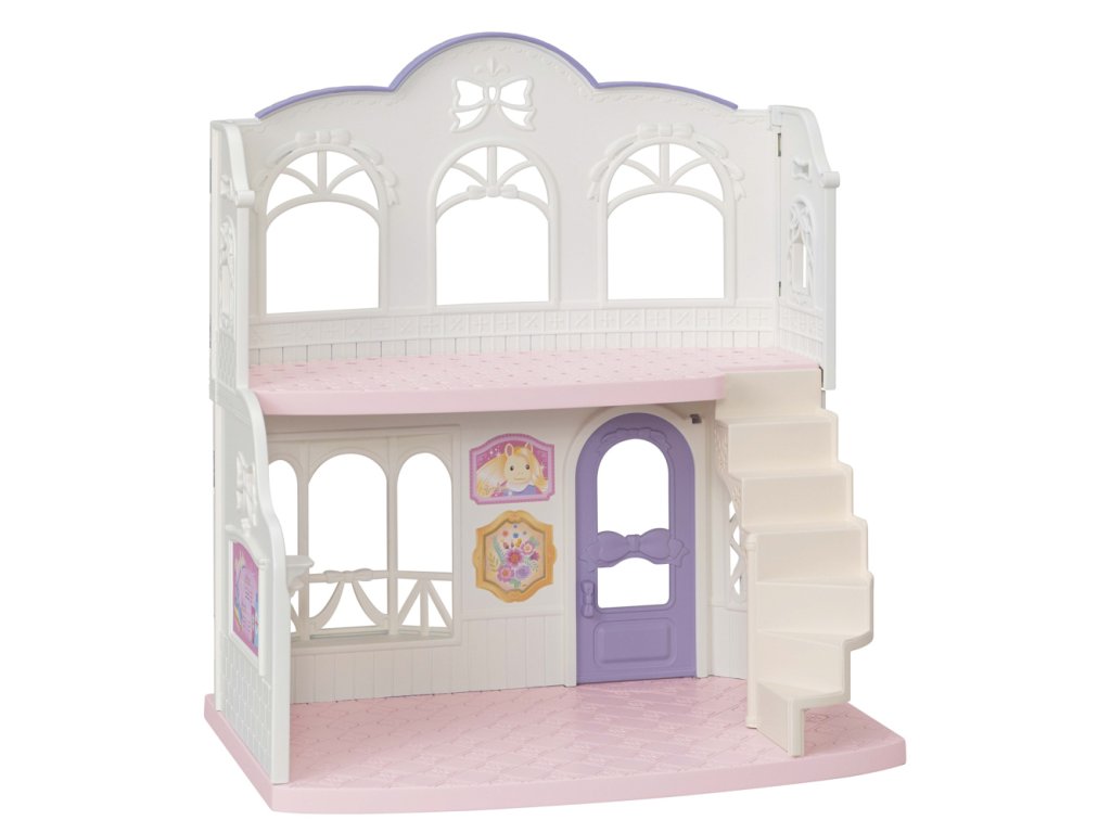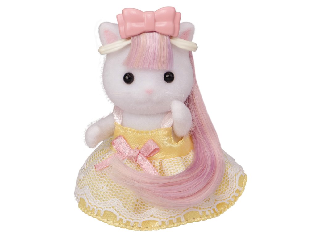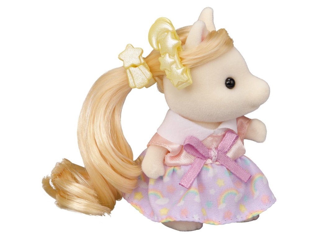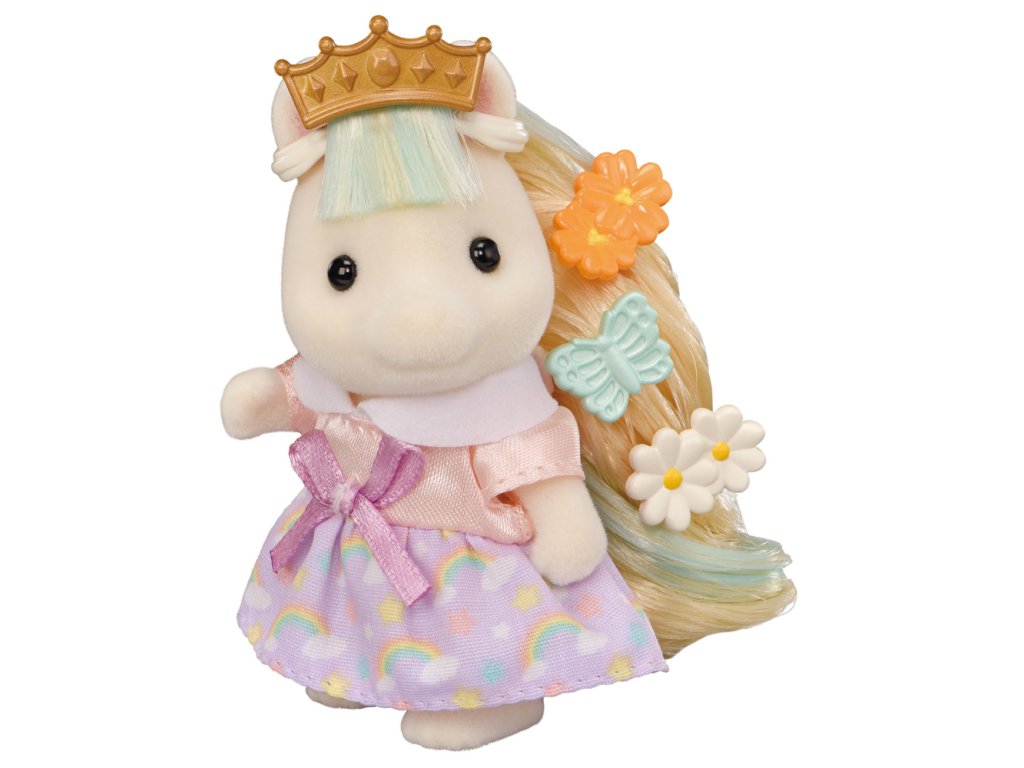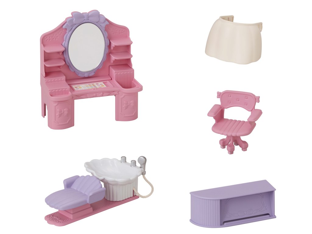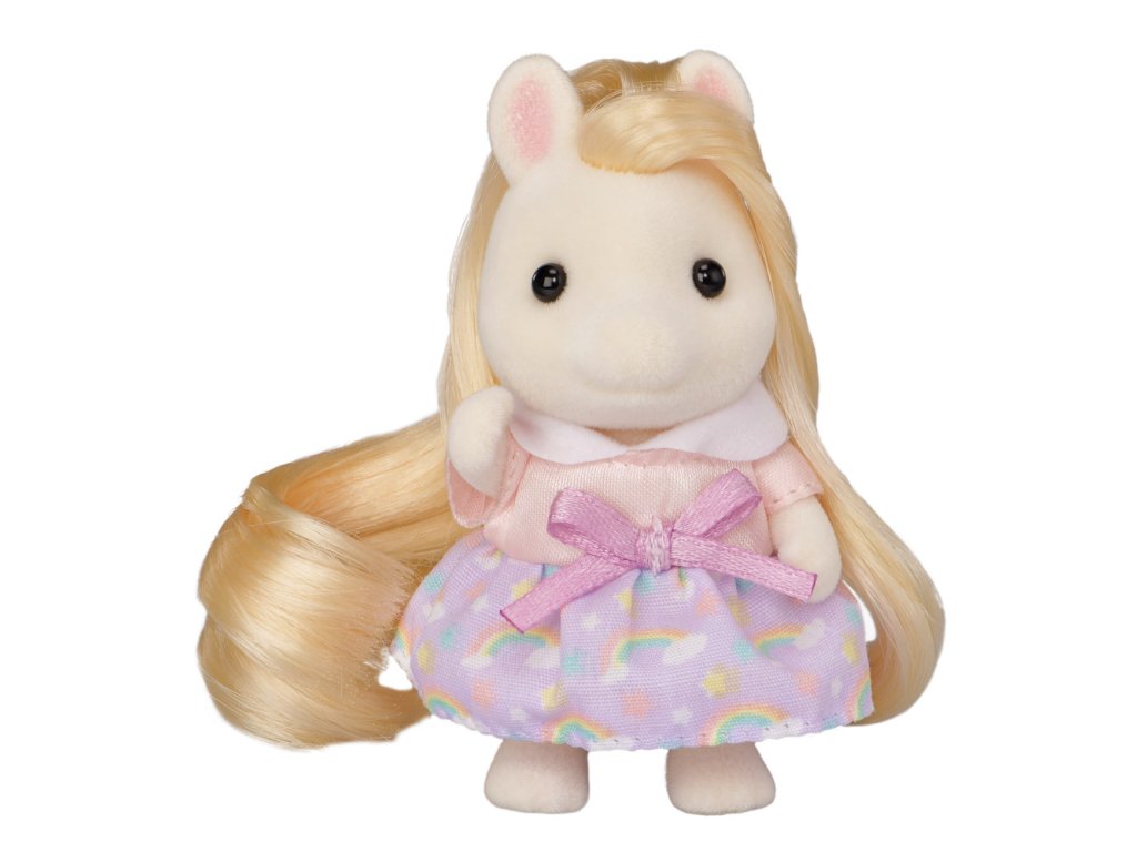 Sada Kadeřnický salón pro poníky obsahuje nádherný kadeřnický salon a hedvábnou poníkovou dívku Sally. Zahrnuje doplňky pro hru na vlasy a make-up. Za pomoci vlasových doplňků a knihy o vlasovém stylingu upravte vlasy dívky Sally různými způsoby. Tato sada obsahuje budovu, nábytek, figurku a doplňky a lze ji užívat samostatně. Součástí je krásná komoda s velkým zrcadlem. Dvoupatrový salon otevírá tolik zábavných způsobů, jak hrát! Učešte vlasy kartáčem nebo použijte kulmu pro zábavnou hru se stylingem vlasů! Figurky mohou držet vysoušeč vlasů. Kombinujte různé vlasové doplňky, jako je pásek Alice a sponky do vlasů, abyste vytvořili různé účesy! Na toaletním stolku vystavte vlasové doplňky, kartáč a fén. Figurku lze připevnit k židli při zaplétání vlasů nebo vytváření jiných účesů. Umyvadlo a židli ve tvaru mušle použijte ke hře na mytí vlasů. Sprchovou hlavici lze připevnit na boční stranu umyvadla. Zkombinujte se sadou Poník s vlasy v kadeřnictví (prodává se samostatně) pro ještě více zábavy se salonem! Nebo zkombinujte se sadou Šaty a ozdoby pro princezny s kotětem (prodává se samostatně) a proměňte horní patro kadeřnictví v obchod s šaty. Přiložené prodloužení vlasů lze také připevnit k dalším figurkám (prodávají se samostatně). Stimuluje nápadité hraní rolí u dětí. Věk: 3+