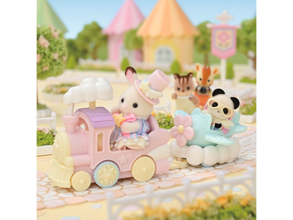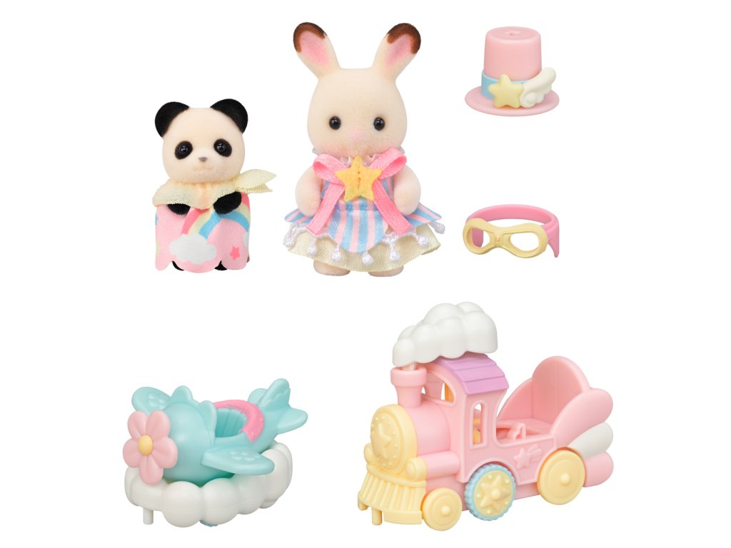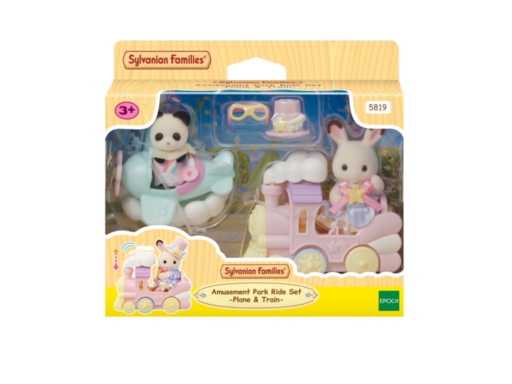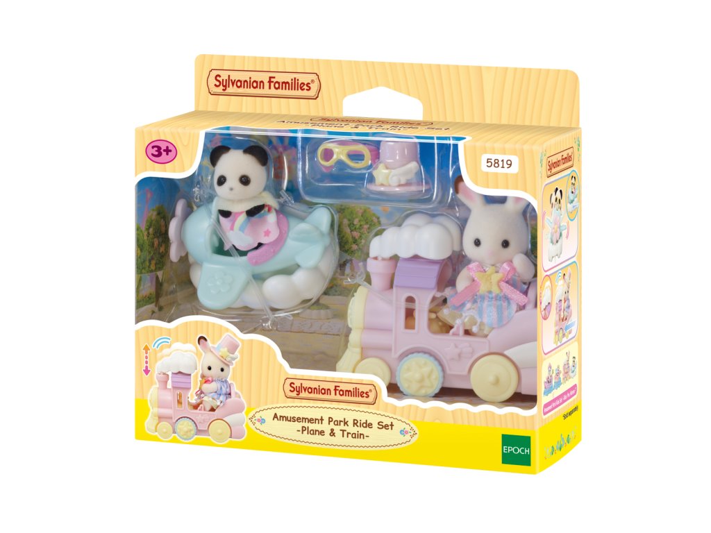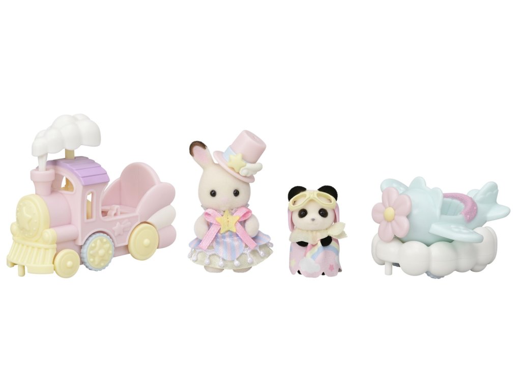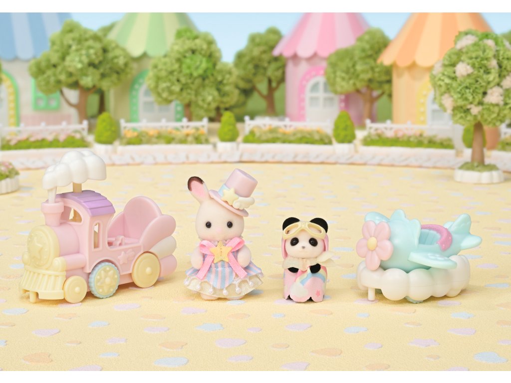 Letadlo, vláček a baby figurky v zábavním parku to vše je součástí této úžasné sady Sylvanian Families. Baby čokoládový králíček Clem a baby panda Erin mají na sobě roztomilé oblečky a doplňky, které se hodí k příslušným vozidlům. Během jízdy se kouř vláčku pohybuje nahoru a dolů a letadlo se kýve ze strany na stranu. Vláček a letadlo lze navíc spojit dohromady. Celá sada je v jemných pastelových barvách. Hračky Sylvanian Families rozvíjejí představivost a povzbuzují děti k hraní rolí. Hra s figurkami rozvíjí kreativitu a učí emocím vytvářením a vyprávěním příběhů založených na každodenních zážitcích a pozorování světa. Vyznačují se nejvyšší kvalitou a výjimečným důrazem na detaily. Figurky Sylvanian Families jsou pokryté měkkým semišem, mají pohyblivé končetiny a hlavu. Oblečení lze z figurek sundat a vyměnit za jiný outfit. Baleno v krabičce. Rozměry balení: 13 x 14,6 x 5,5 cm. Věk: 3+