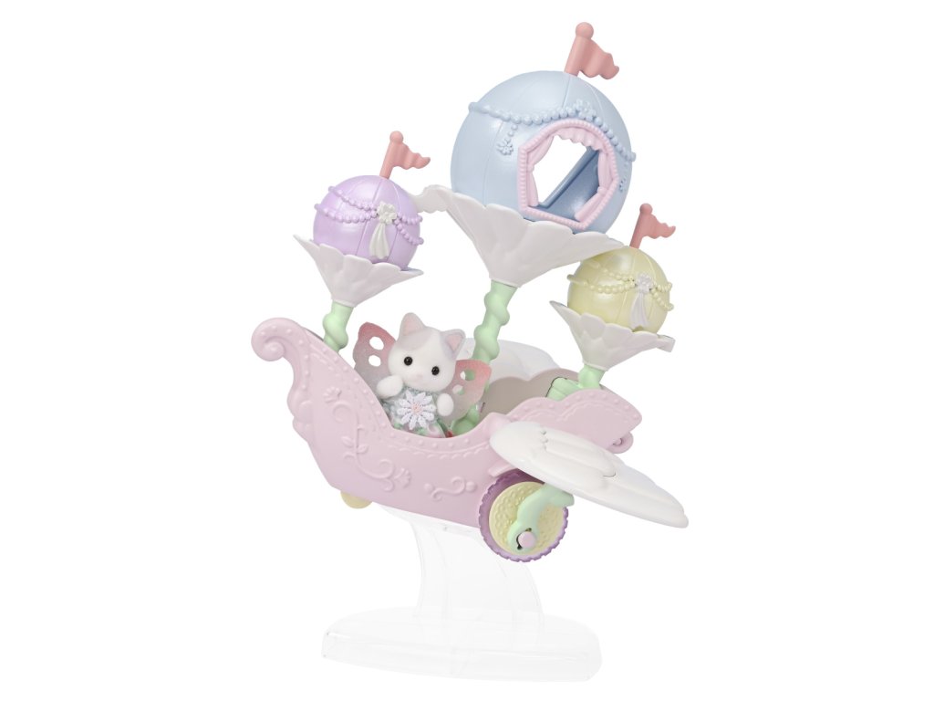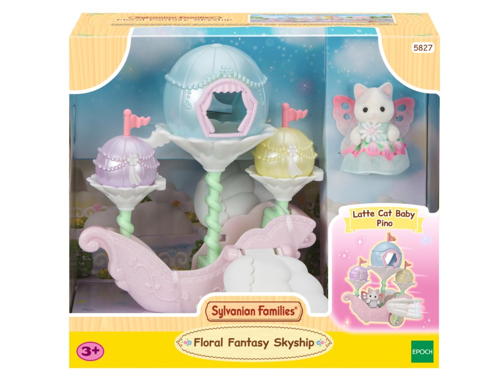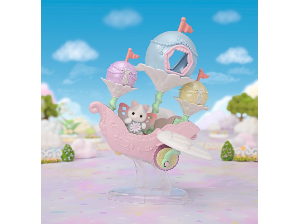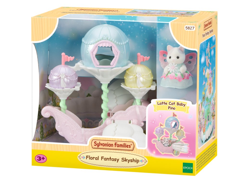 Létající loď květinových víl vás zve na cestu do nebeského, magického světa. Sada obsahuje roztomilou figurku miminka Pino Fontana z rodiny Latte koček v kostýmu květinové víly. Létající vozidlo je vybaveno křídly, která se pohybují nahoru a dolů, když vozidlo jede po rovině. Vozidlo pojme několik baby figurek, přičemž jednu z nich lze připevnit na speciální úchyt, což vytváří dojem, že figurka se vznáší nad vozidlem. V květinových kalichách, které vyrůstajících přímo z vozidla se nacházejí barevné balónky, z nichž jeden slouží jako komnata, do které se vejde figurka květinové víly Sylvanian Families. Létající vozidlo může být skvělým nápadem na dekoraci domu nebo bytu. Hračky Sylvanian Families podporují představivost a vybízejí děti k hraní rolí. Hra s figurkami rozvíjí kreativitu a učí emocím vytvářením a vyprávěním příběhů založených na každodenních zážitcích a pozorování světa. Vyznačují se nejvyšší kvalitou a výjimečným důrazem na detaily. Figurky Sylvanian Families mají pohyblivé končetiny a hlavu. Baleno v krabičce. Rozměry balení: 18 x 20 x 12,5 cm. Věk: 3+