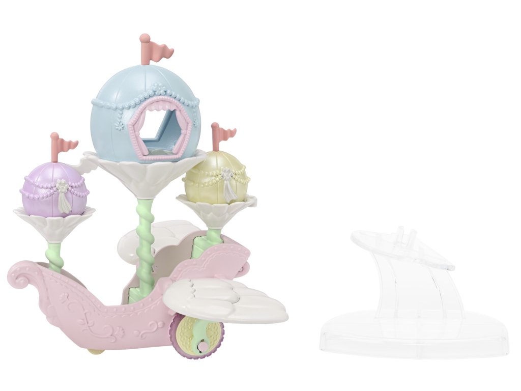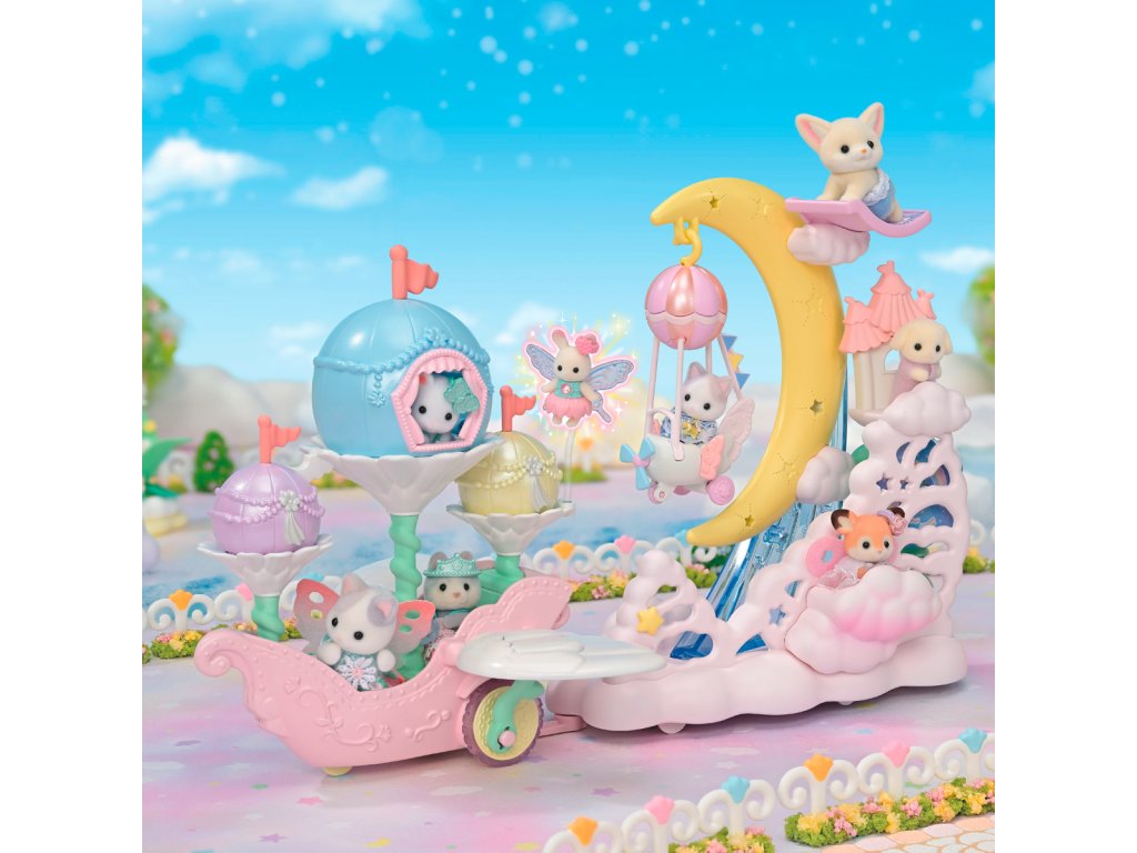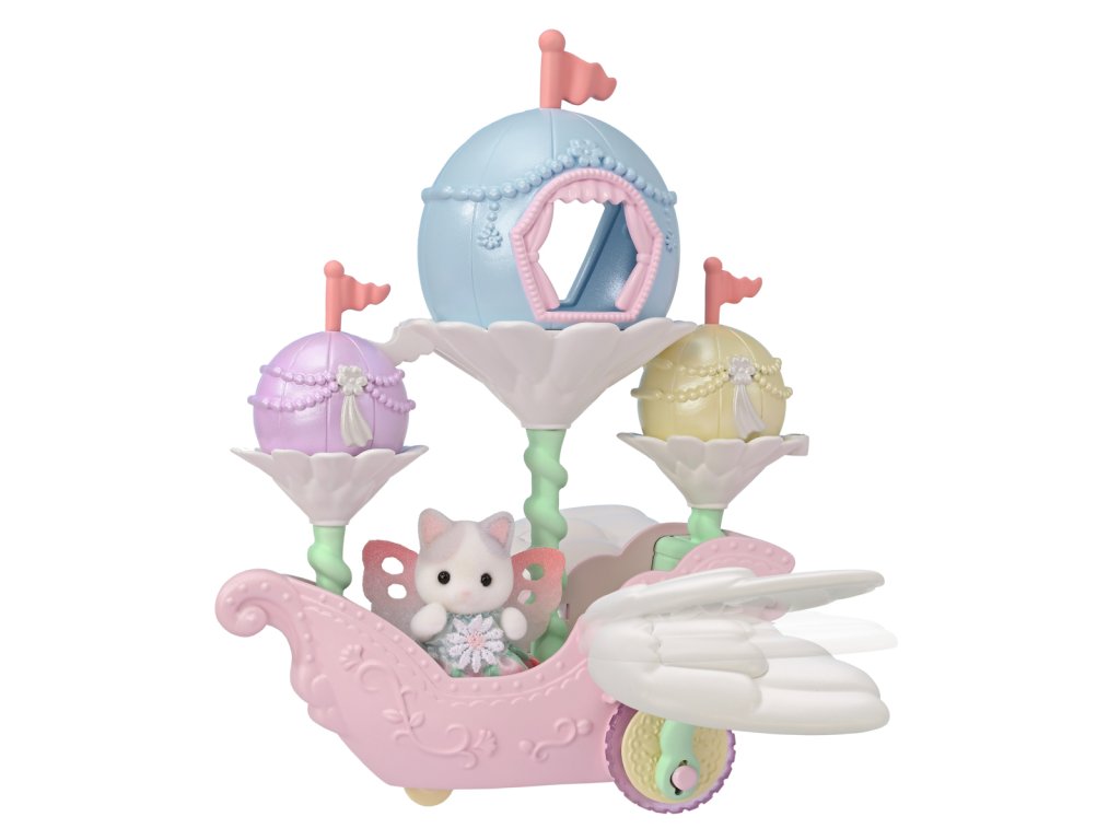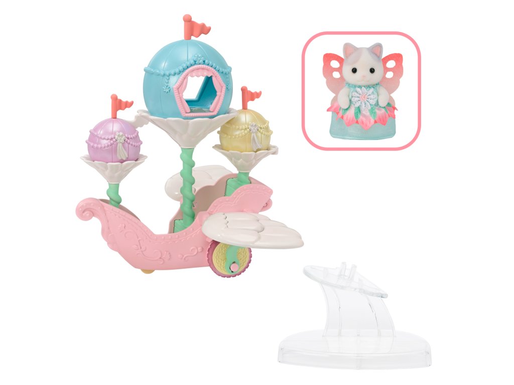 Létající loď květinových víl vás zve na cestu do nebeského, magického světa. Sada obsahuje roztomilou figurku miminka Pino Fontana z rodiny Latte koček v kostýmu květinové víly. Létající vozidlo je vybaveno křídly, která se pohybují nahoru a dolů, když vozidlo jede po rovině. Vozidlo pojme několik baby figurek, přičemž jednu z nich lze připevnit na speciální úchyt, což vytváří dojem, že figurka se vznáší nad vozidlem. V květinových kalichách, které vyrůstajících přímo z vozidla se nacházejí barevné balónky, z nichž jeden slouží jako komnata, do které se vejde figurka květinové víly Sylvanian Families. Létající vozidlo může být skvělým nápadem na dekoraci domu nebo bytu. Hračky Sylvanian Families podporují představivost a vybízejí děti k hraní rolí. Hra s figurkami rozvíjí kreativitu a učí emocím vytvářením a vyprávěním příběhů založených na každodenních zážitcích a pozorování světa. Vyznačují se nejvyšší kvalitou a výjimečným důrazem na detaily. Figurky Sylvanian Families mají pohyblivé končetiny a hlavu. Baleno v krabičce. Rozměry balení: 18 x 20 x 12,5 cm. Věk: 3+