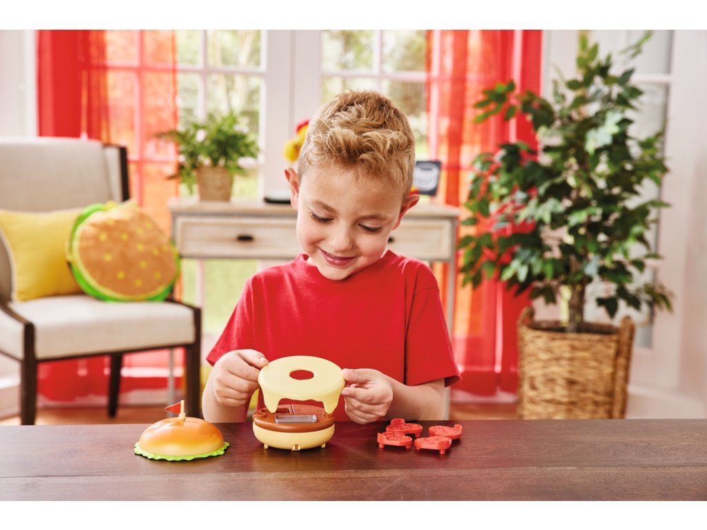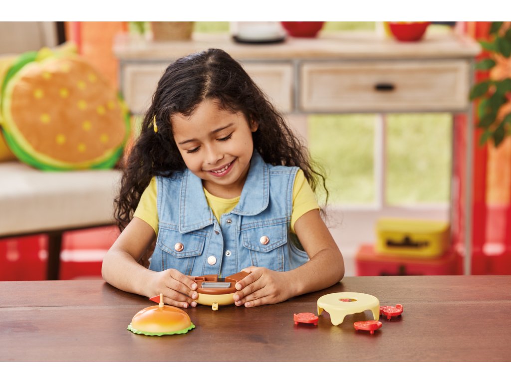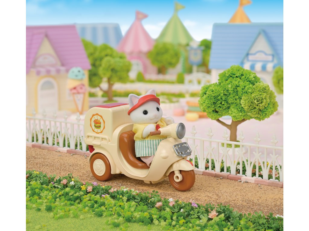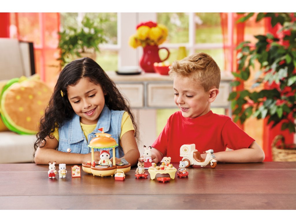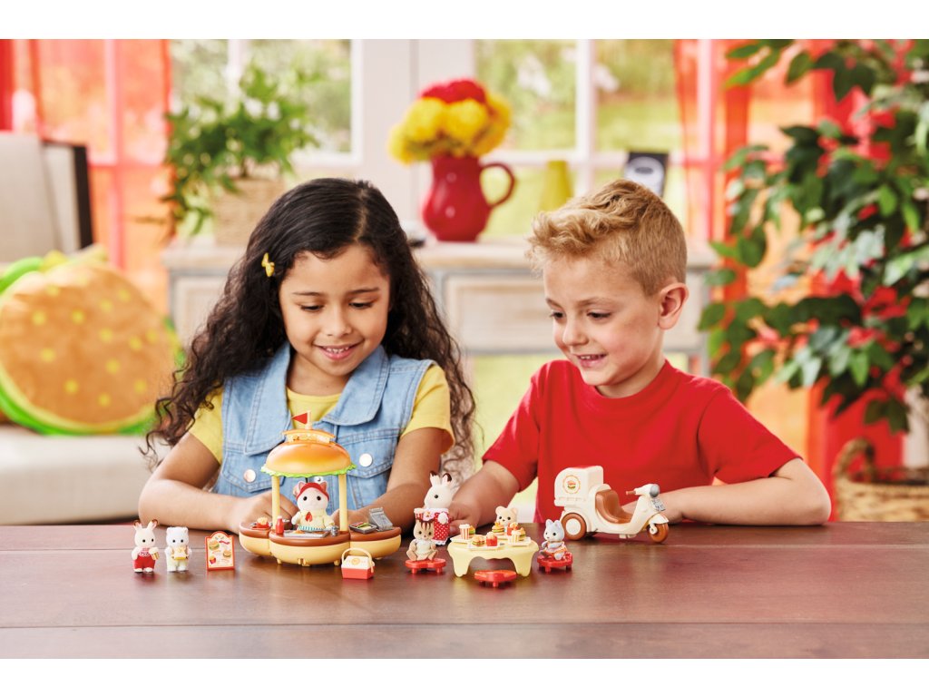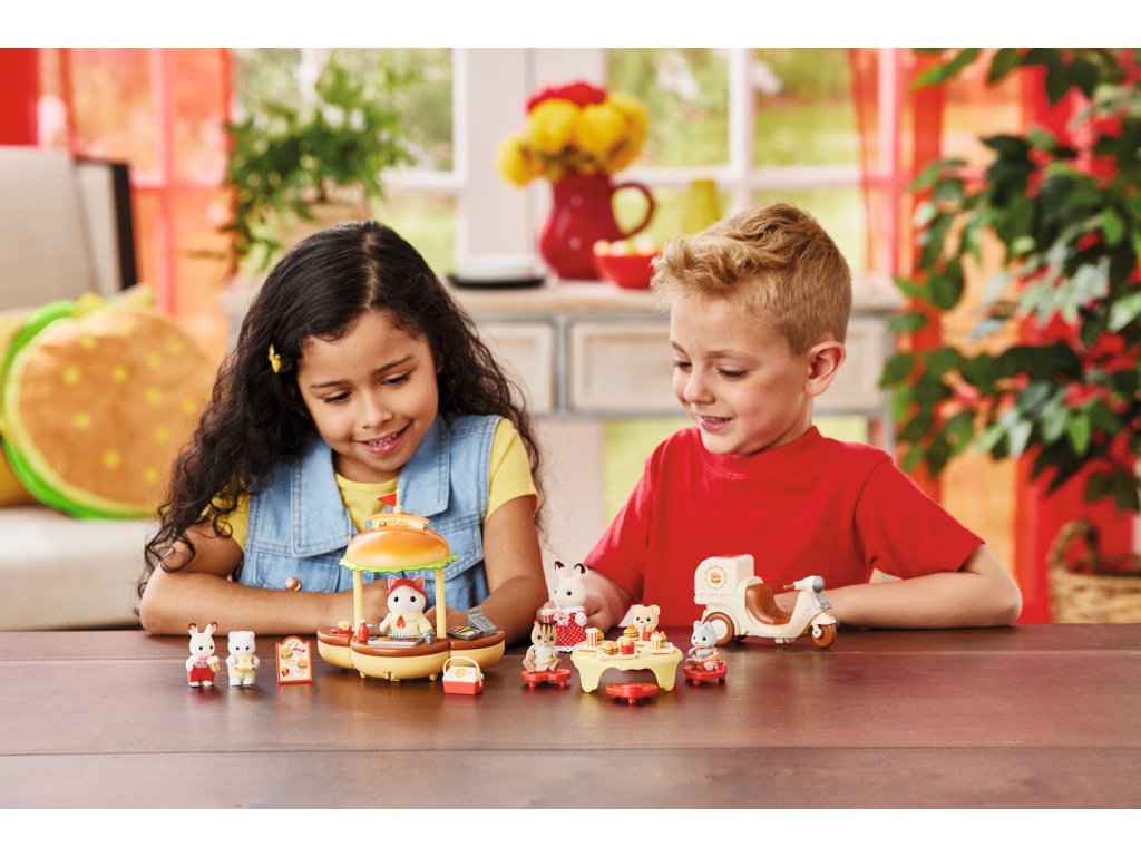Sada Pojízdný stánek s hamburgery obsahuje figurku tatínka z rodiny Latte Cat Familly, restauraci ve tvaru obřího hamburgeru, rozvážkový skútr a spoustu doplňků. Hamburger se promění v restauraci se stolem a židlemi. Sada obsahuje více než 30 dílů, včetně lahodných hamburgerů v houskách ve tvaru kočičích uší a nápojů. Můžete si pochutnat na grilovaných karbanátcích a horkých bramborách. Pojízdný stánek s hamburgery lze složit do tvaru velkého hamburgeru a pro snadnou přepravu ho připevnit na skútr tatínka Latte Cat. Tatínek Latte Cat je majitelem hamburgerové restaurace a dodává všem obyvatelům země Sylvanian Families vynikající hamburgery. Tatínek si do restaurace s hamburgery oblékl speciální oblečení. Figurka s tímto oblečením je k dispozici pouze v této sadě. Hračky Sylvanian Families vyrábí japonská společnost Epoch již více než 35 let. Vyznačují se výjimečnou kvalitou a smyslem pro detail. Doporučujeme od 3 let věku.
