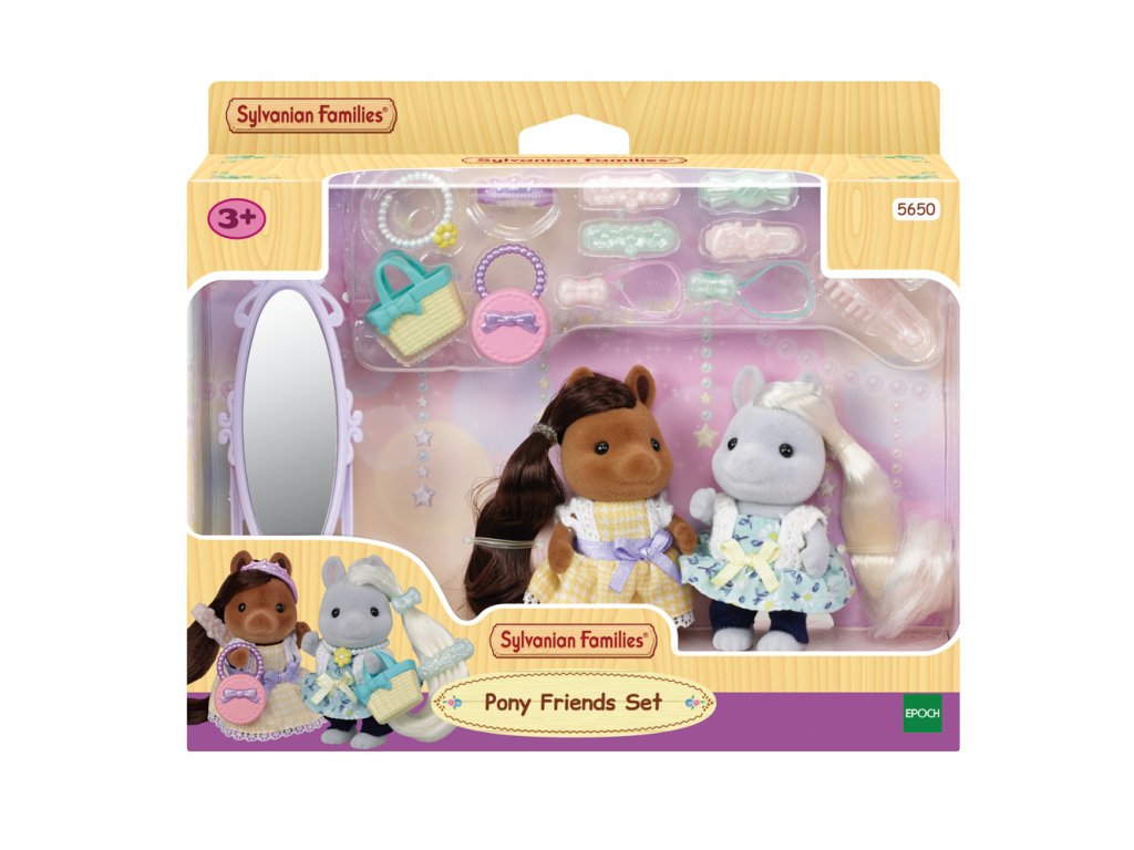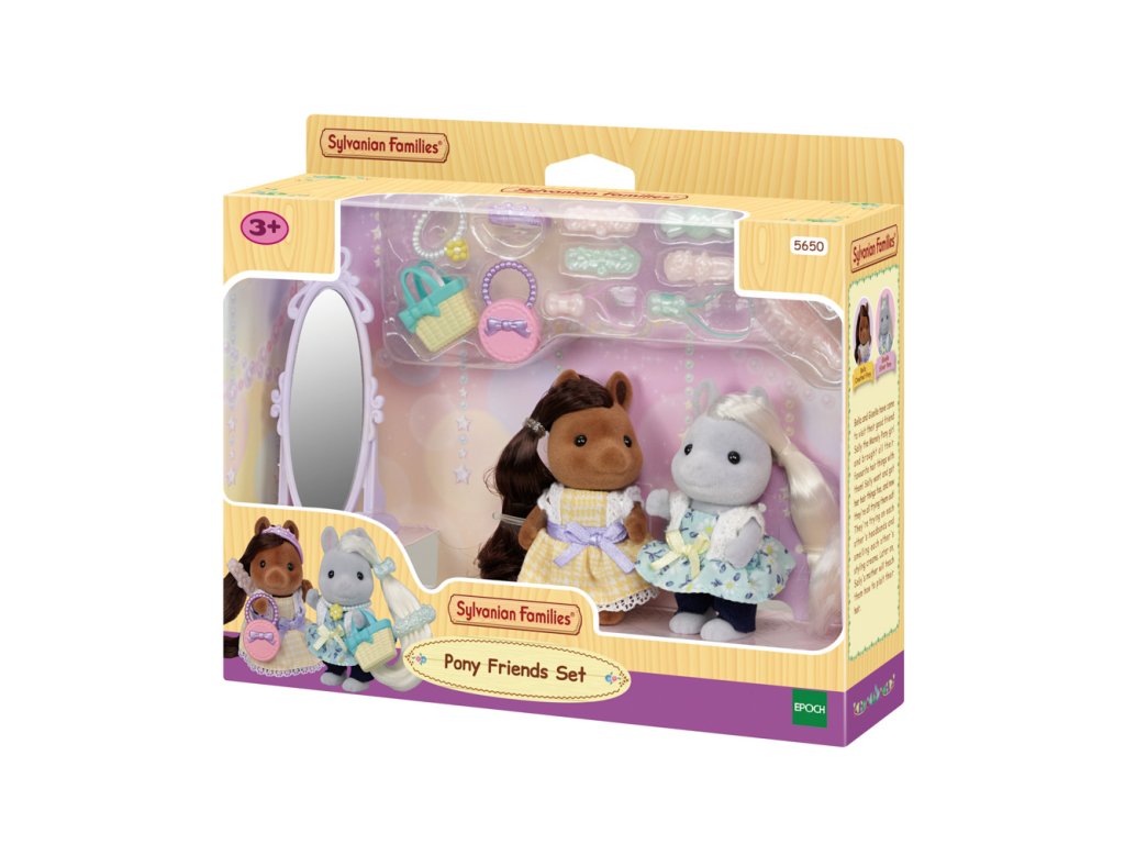Sada Poníci kamarádi v kadeřnictví obsahuje dvě figurky pony s hedvábnými vlasy, stylové volně stojící zrcadlo, vlasové a módní doplňky. Upravte si vlasy dívek Pony a kombinujte různé tašky a doplňky, abyste vytvořili outfity od hlavy až k patě. Kaštanová pony dívka Vera má na sobě šaty, zatímco dívka Giselle nosí kalhoty a top. Zkombinujte se stylovým salonem Kadeřnický salón pro poníky (prodává se samostatně) pro ještě zábavnější a nápadité hraní. Tato sada obsahuje figurky a doplňky a lze s ní hrát samostatně. Stimuluje u dětí imaginativní hraní rolí. Věk: 3+