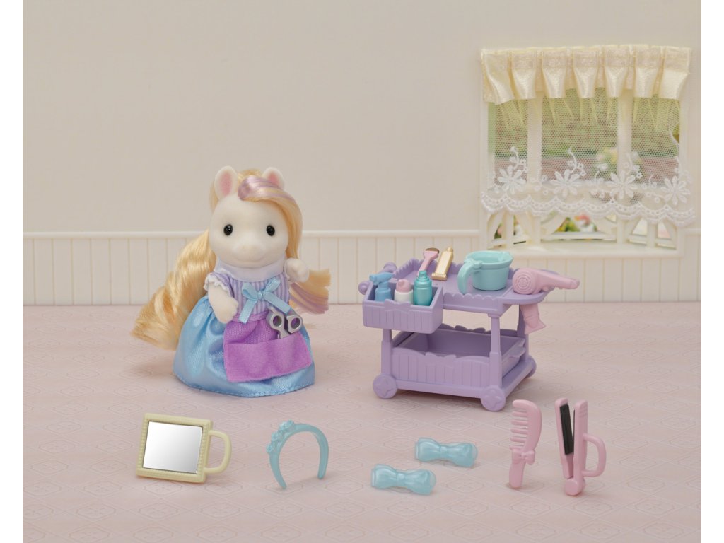 Sada Poník s vlasy v kadeřnictví obsahuje vozík, vlasové doplňky a Manely Pony matku Serafinu, kadeřnici s hedvábnými vlasy. Vytvářejte různé účesy pomocí přiložených vlasových doplňků. Všechno příslušenství lze uložit do vozíku. Nůžky a hřeben lze mít v kadeřnické kapse. Figurky mohou držet zrcátko, vysoušeč vlasů, žehličky na vlasy a misku. Zkombinujte se sadou Kadeřnický salón pro poníky (prodává se samostatně) pro ještě více zábavy s vlasy a make-upem! Stimuluje nápadité hraní rolí u dětí. Věk: 3+
