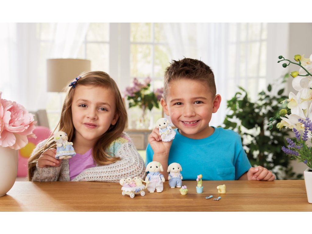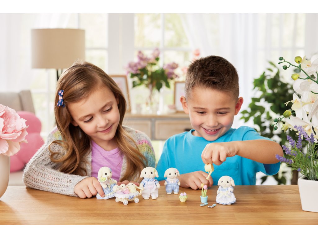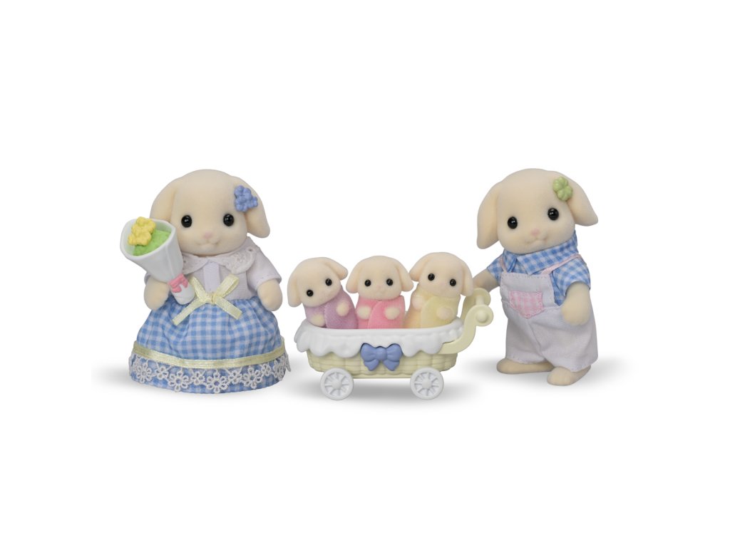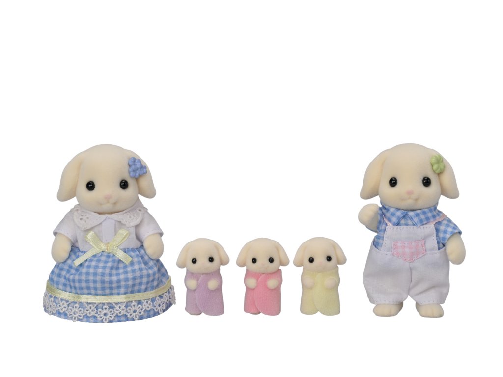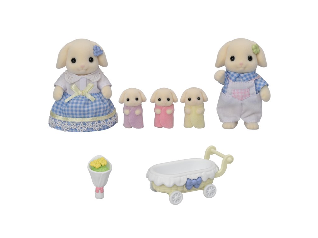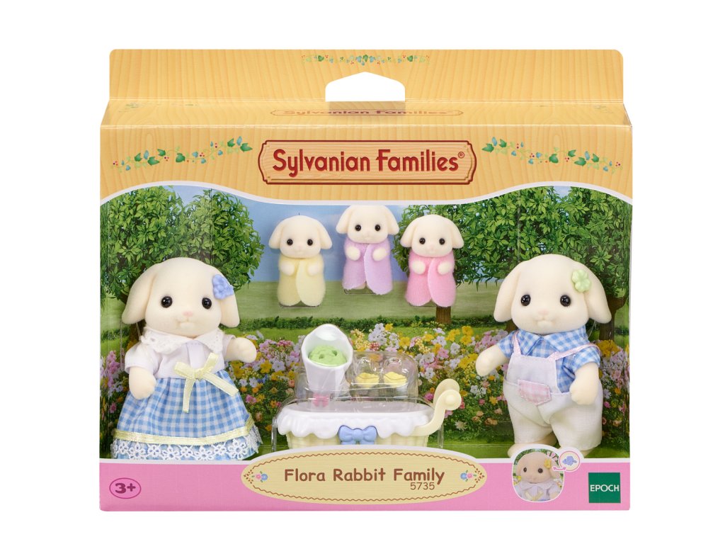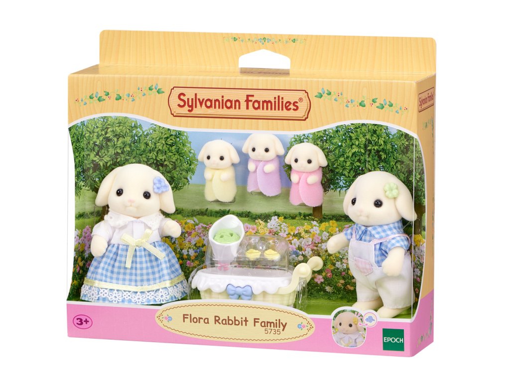 Flora Rabbit Family obsahuje roztomilé figurky králíků s padajícími ušima, které milují květiny. Sada obsahuje figurku tatínka, maminku a tři miminka, kolébku a další různé doplňky. Květiny, které jsou součástí sady, lze připnout k uším figurky nebo umístit do kytice. Do kolébky vejdou tři děti. Kytičku v uchu maminky a jetele v uchu tatínka lze mezi figurkami přeměnit. Figurky rodičů z rodiny Flora Rabbit jsou oblečeny do roztomilých modrých kostkovaných oblečků. Táta Nolan je velmi jemný a přátelský, dělá lahodný bylinný čaj a hostí ho ostatní. Ráda mluví svými rostlinami, děti si myslí, že jim květiny opravdu rozumí. Ariaina máma je talentovaná zpěvačka a pianistka. Učí děti ve školce. Děti ji milují, protože je velmi milá a dobře s ní baví. Bohužel neumí dobře kreslit. Trojčata jmenují Rosemary, Thyme a Sage. Sadu lze kombinovat s barevnou školkou Sylvanian Families (5743), barevným autobusem (5744), barevnou skluzavkou (5745), dětským hřištěm s bazénem (5746) nebo rodinou Flora Rabbit (5735) a dalšími sadami Sylvanian Families pro ještě větší zábavu a kreativní zábavu (sady prodávají samostatně). Doporučujeme od 3 let.