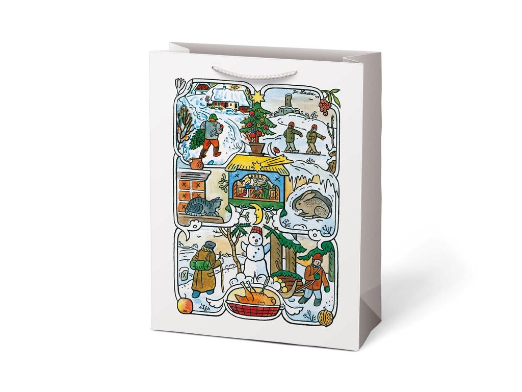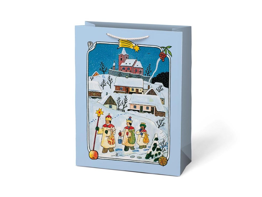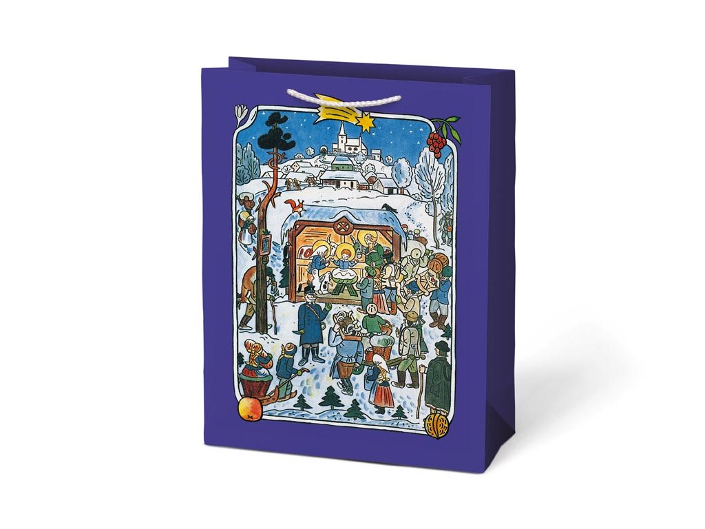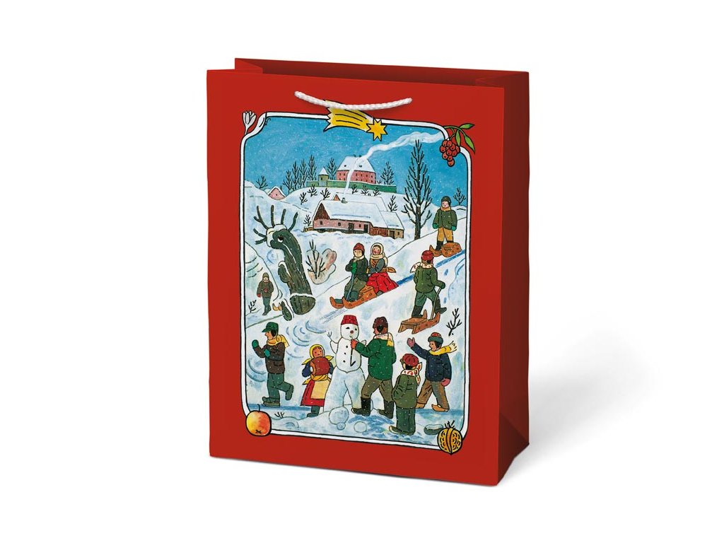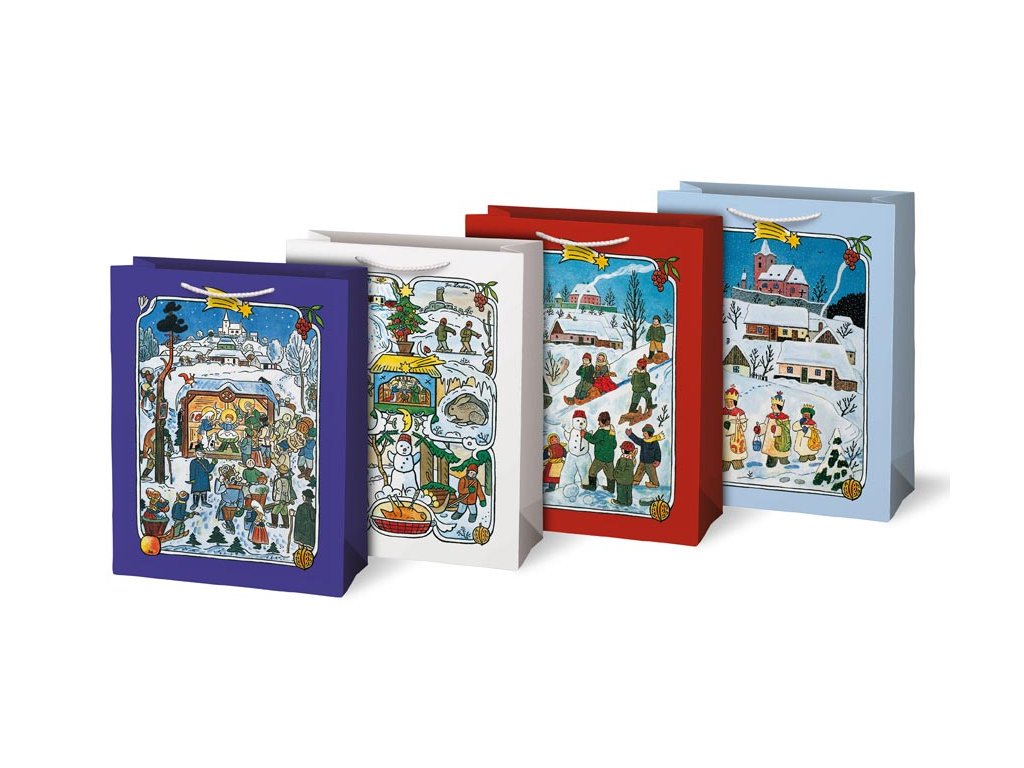 Papírová vánoční dárková taška s vánočními motivy Josefa Lady (bílá, červená, světle modrá, tmavě modrá). Každý dárek musí být v něčem zabalený. Pokud nemáte čas balit ho do balicího papíru, máme pro Vás na výběr nejrůznější dárkové tašky.Taška má pevné ucho pro snadné přenášení a štítek pro vepsání jména či přání.Rozměr: 260 x 340 x 140 mmPovrchová úprava: lokální UV lakBarva: bílá, červená, světle modrá, tmavě modráDodáváme v mixu po 4 ks dle skladové zásoby.Uvedená cena je za 1 ks.