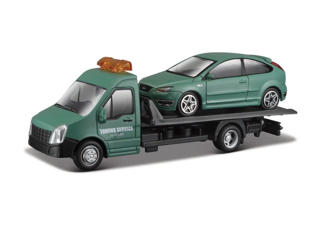 Bburago - STREET FIRE, Přepravní vozidlo Flatbed Transport + Ford Focus ST, 1:43