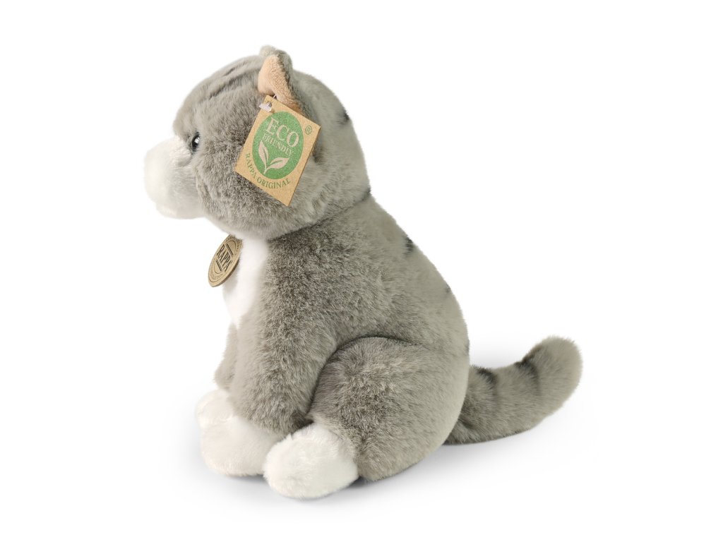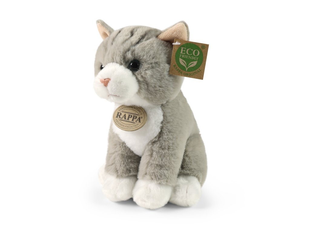 SOFT COLLECTION je nová kolekce plyšových hraček z nového, ještě jemnějšího materiálu. Plyšová kočka v šedé barvě měří 23 cm a díky těm nejkvalitnějším materiálům se řadí do Exkluzivní kolekce plyšových hraček značky Rappa. Díky ručnímu zpracování každého kusu navíc vypadá jako živá. Proč označení ECO-FRIENDLY? Rappa si je vědoma všech dopadů na životního prostředí, zaměřuje se na udržitelnost a omezení používání plastů na minimum. Proto je výplň hraček vyrobena z recyklovaných materiálů, zejména PET lahví. Ta je však zcela nezávadná a vhodná i pro děti od narození. FUN FACT: Věděli jste, že kočky slyší až třikrát lépe než lidé a jejich uši zachytí zvuky o vysoké frekvenci?