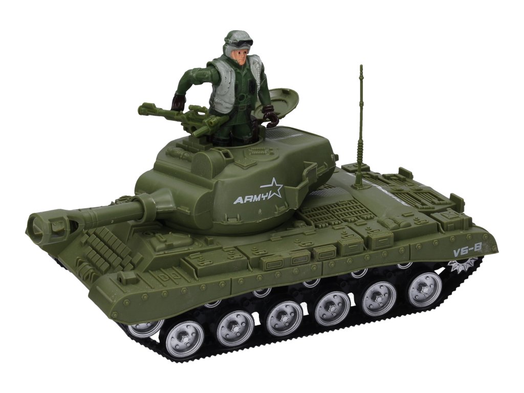 Tank s vojákem a doplňky. Velikost tanku 26 cm. Na setrvačník.