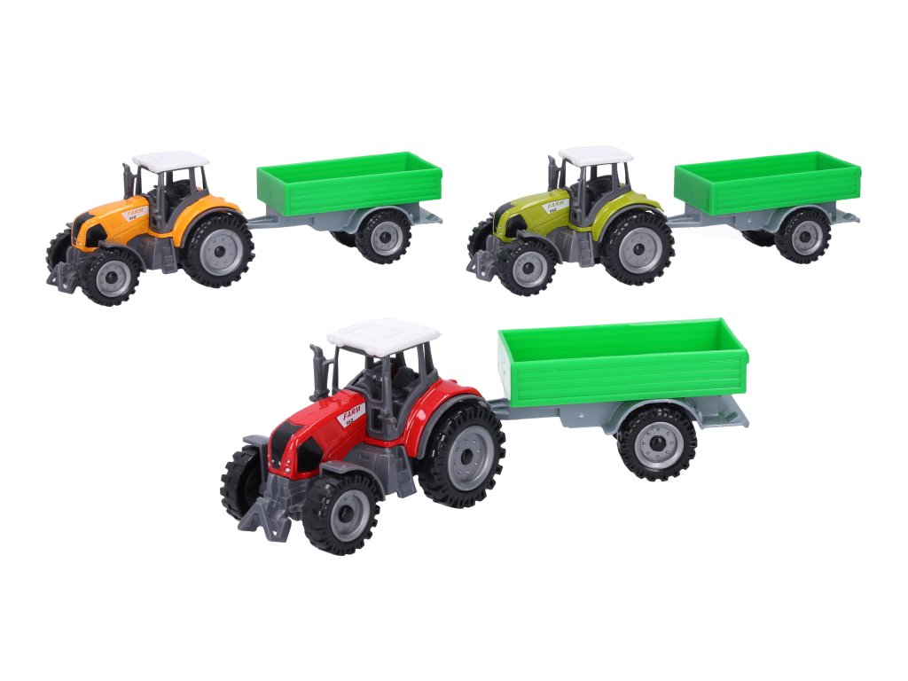 Kovový traktor s vlečkou a volnými koly potěší všechny malé nadšence těchto strojů.