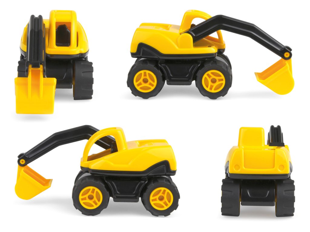 Bagr vyrobený z odolného ABS plastu s vysoce kvalitními pogumovanými koly. 4mm pozinkované ocelové osy. Velikost 13 cm