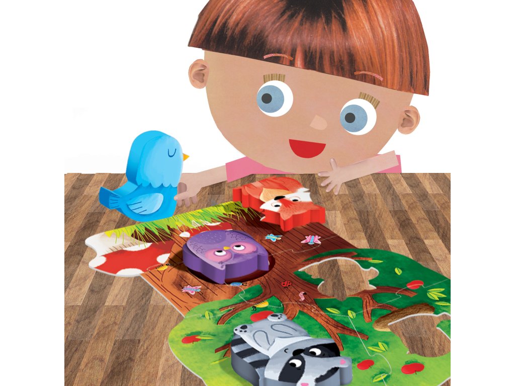 Toto úplně první puzzle, inspirované metodou slavné pedagožky Marie Montessori, umožňuje velmi malým dětem seznámit se s malým kouskem lesa, čímž stimuluje gestikulaci, hmat, vnímání tvarů a prostorové vnímání. Tento multi-senzorický přístup napomáhá důkladnějšímu učení, jež je velmi důležité pro kognitivní vývoj u dětí předškolního věku.