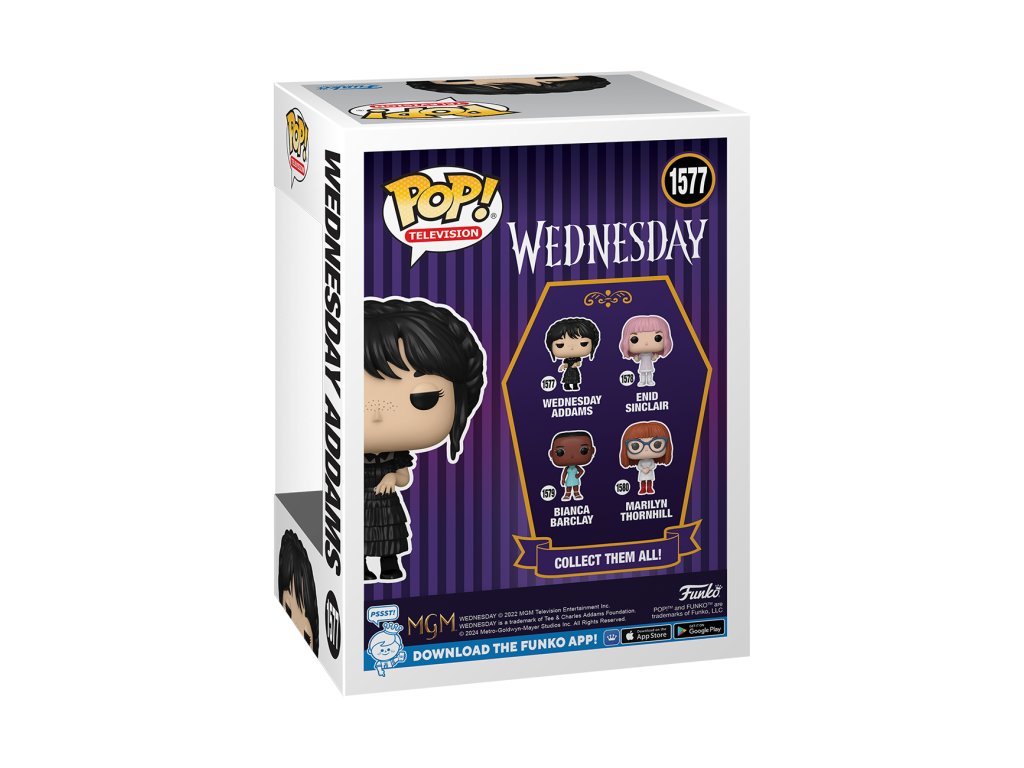 Oficiální produkt - sběratelská figurka POP! z dárkového a sběratelského zboží z katalogu výrobků s grafikou amerického nadpřirozeného seriálu Wednesday od internetové streamovací společnosti Netflix.