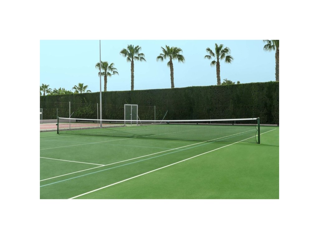 Tenisové sítě řady Merco jsou vyrobené od renomovaného evropského výrobce. Kvalitní síť na tenis Deluxe TN40 je vhodná pro tenisové kluby a pro hru na všech výkonnostních úrovních. Síť je vyrobená z vysoce pevného, bezuzlového polypropylenu, který je odolný proti UV a povětrnostním vlivům. Díky tomu je síť vhodná pro použití v hale i na venkovních kurtech. Má klasické rozměry 12,8 x 1,07 m, sílu 4 mm a velikost oka 35 mm. Horní bílá PES páska s výškou 55 mm přidává síti dlouhou životnost. Síť se napíná pomocí ocelového lanka. Tenisová síť Deluxe TN40 splňuje všechny požadavky normy EN 1510. Parametry: - odolný PP materiál - rozměry: 12,8 x 1,07 m - síla: 4 mm - velikost oka: 35 mm - horní bílá PES páska - PVC páska po celém obvodu - ocelové lanko, které lze zkrátit, délka 14 m - pro indoor i outdoor použití - pro všechny výkonnostní úrovně