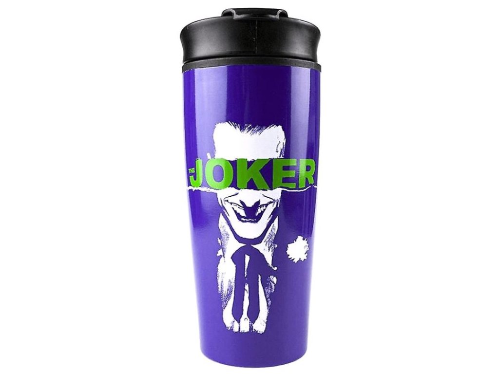 Oficiální cestovní hrnek z katalogu produktů s logem a grafikou komiksového vydavatelství DC Comics.