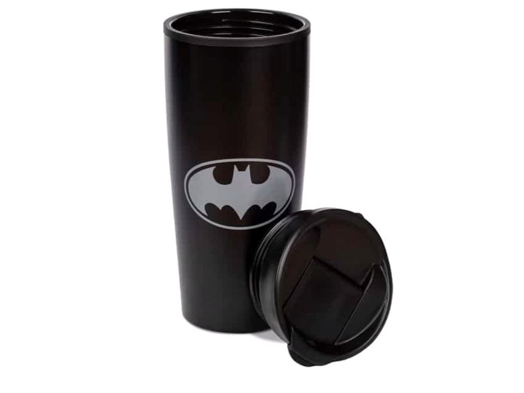 Oficiální cestovní hrnek z katalogu produktů s logem a grafikou komiksového vydavatelství DC Comics.