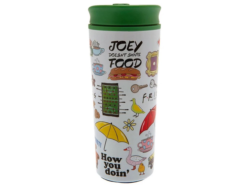 Cestovní hrnek s víčkem s grafikou různých ikon ze seriálu Friends. Uchová teplotu horkého nápoje víčkem s dobře těsnícím zajištěním otvoru pro pití nápoje. Hrnek je vhodný pro každého menšího i většího cestovatele.