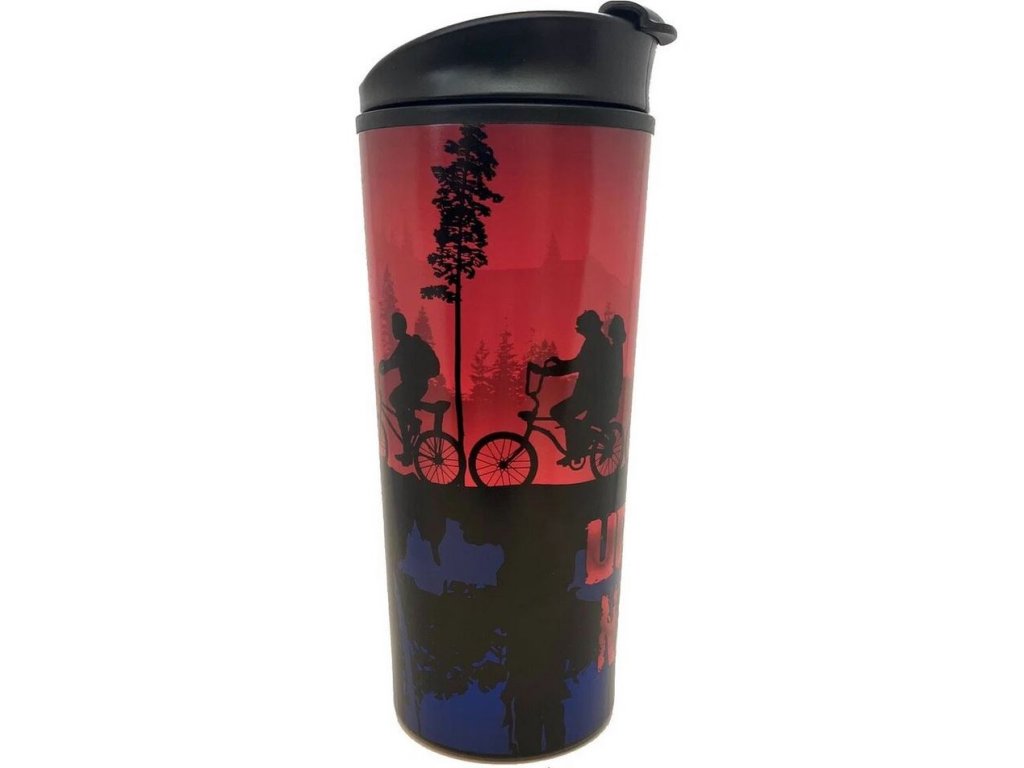 Oficiální produkt - cestovní hrnek s víčkem z katalogu zboží s grafikou a licencí populárního mysteriózního seriálu Stranger Things.
