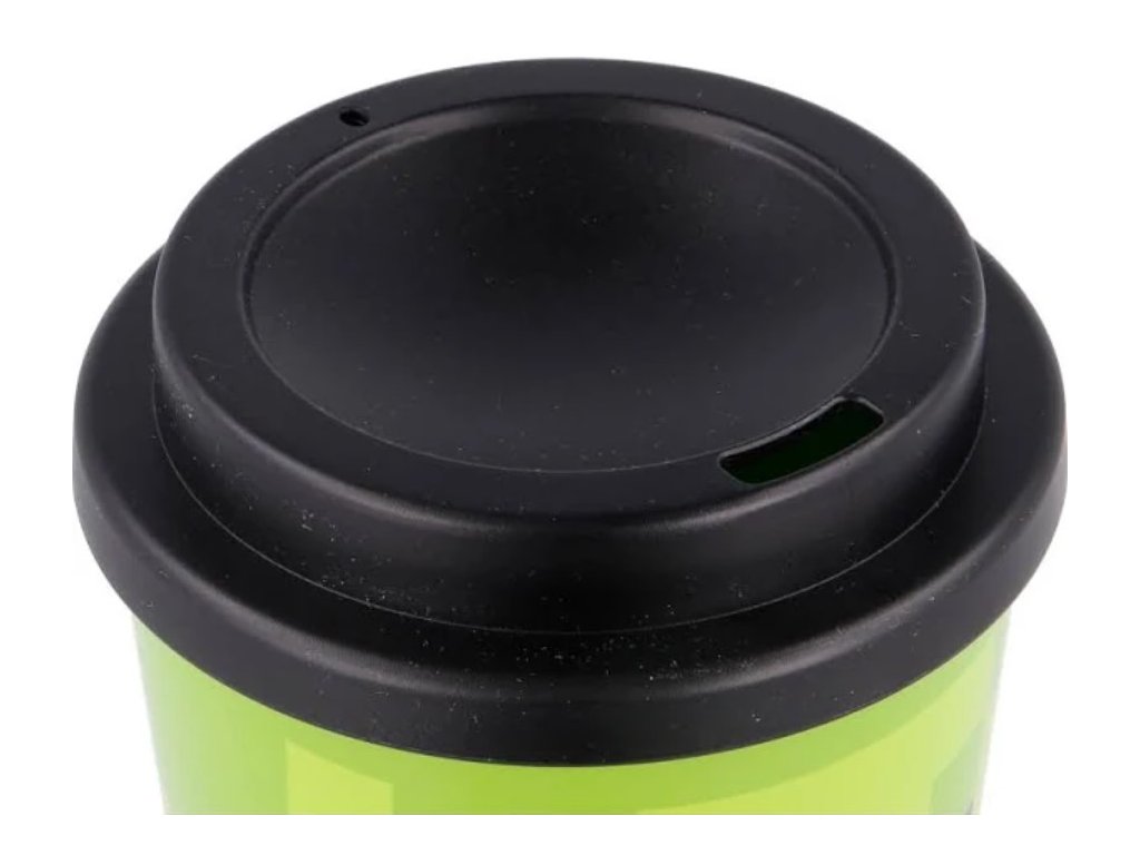 Hrnek má odnímatelné víčko s otvorem pro pití nápoje.