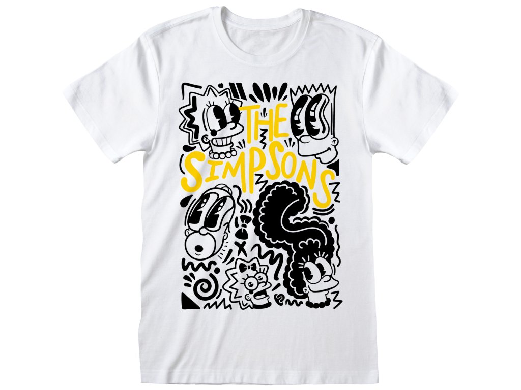 Atraktivní bílé pánské tričko s grafikou grafitového nápisu názvu animovaného seriálu The Simpsons (Simpsonovi).