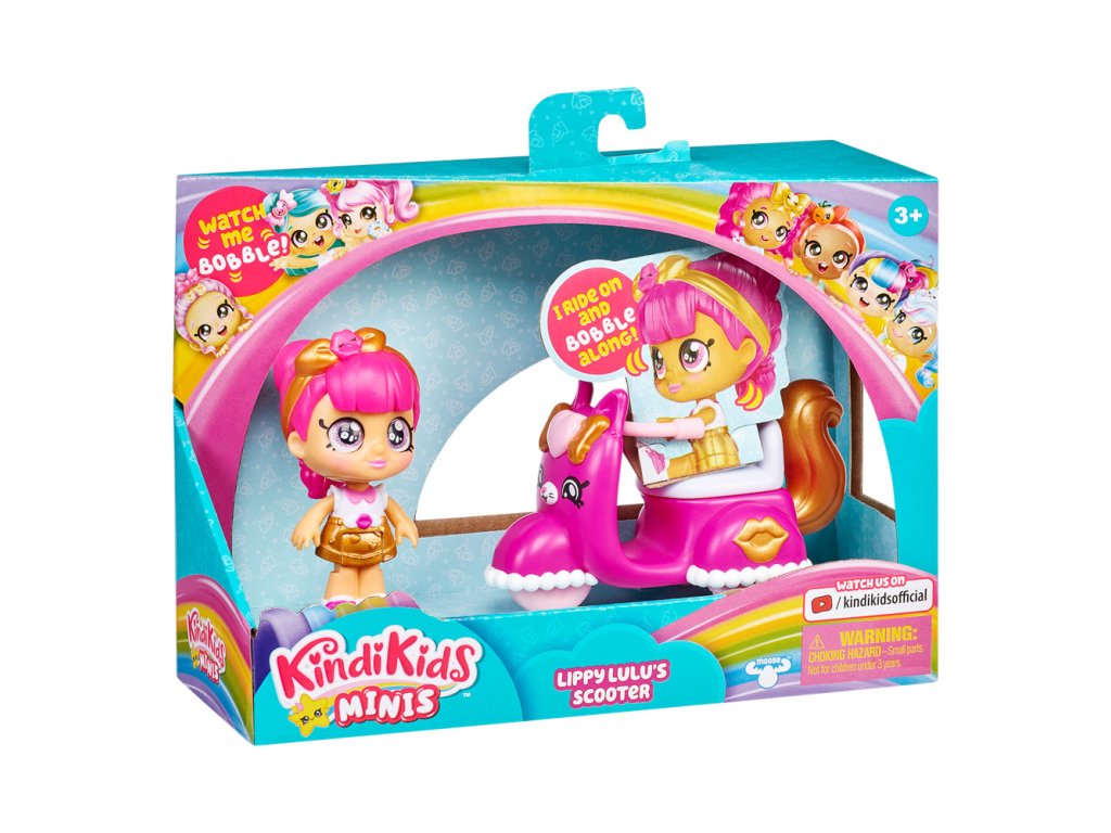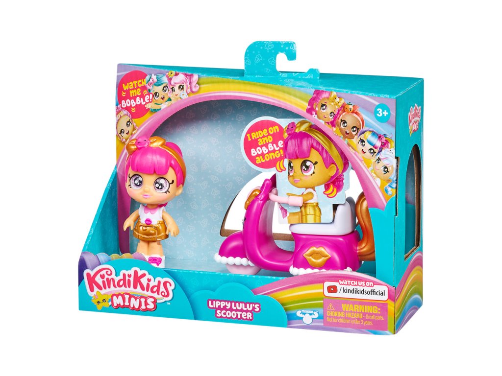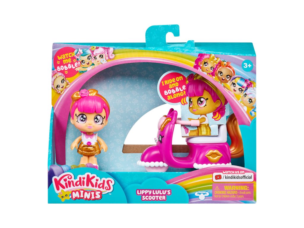 Kindi Kids jsou teď Mini!! Vaše oblíbené Kindi Kids jsou nyní k dispozici v nádherné malé velikosti, které si můžete vzít s sebou všude. Dejte Lippy Lulu na její skuter, stlačte ji a podívejte se, jak se její hlava pohybuje.Sesbírej je všechny. Lippy Lulu má pohyblivé ruce a nohy a kývá hlavou. Lipa Lulu má velké, zářivé oči. Rozměr balení: 8 x 17,5 x 21cm Věk: 3+