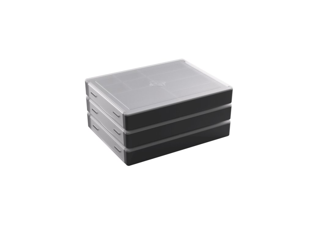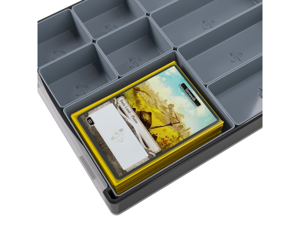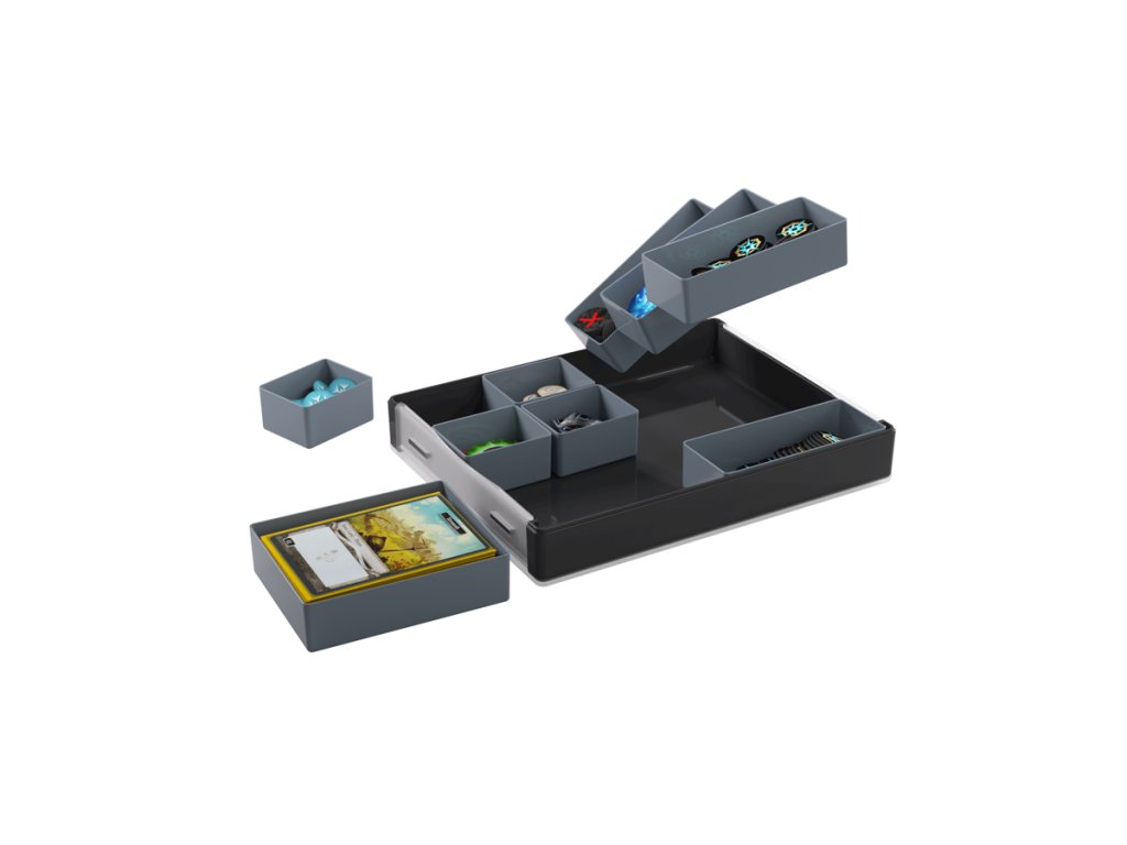 Tato jedinečná krabička slouží k ukládání a organizování žetonů, karet, kostek a jiných drobných herních doplňků. Organizér obsahuje 9 vyjímatelných přihrádek ve 3 různých velikostech.