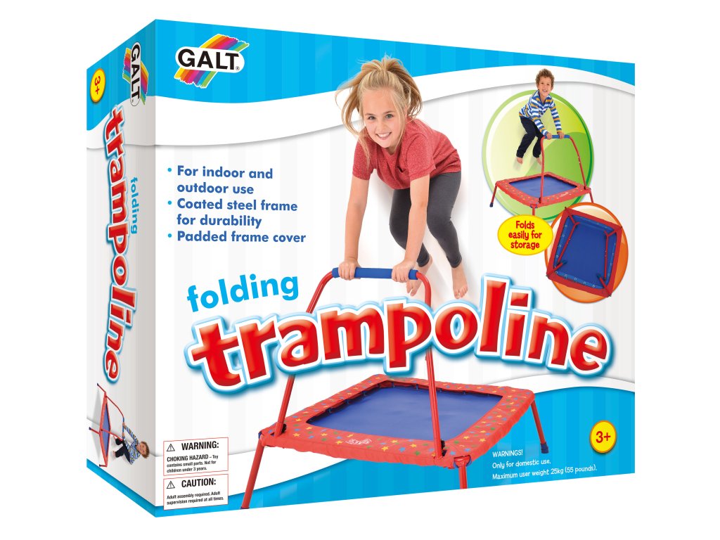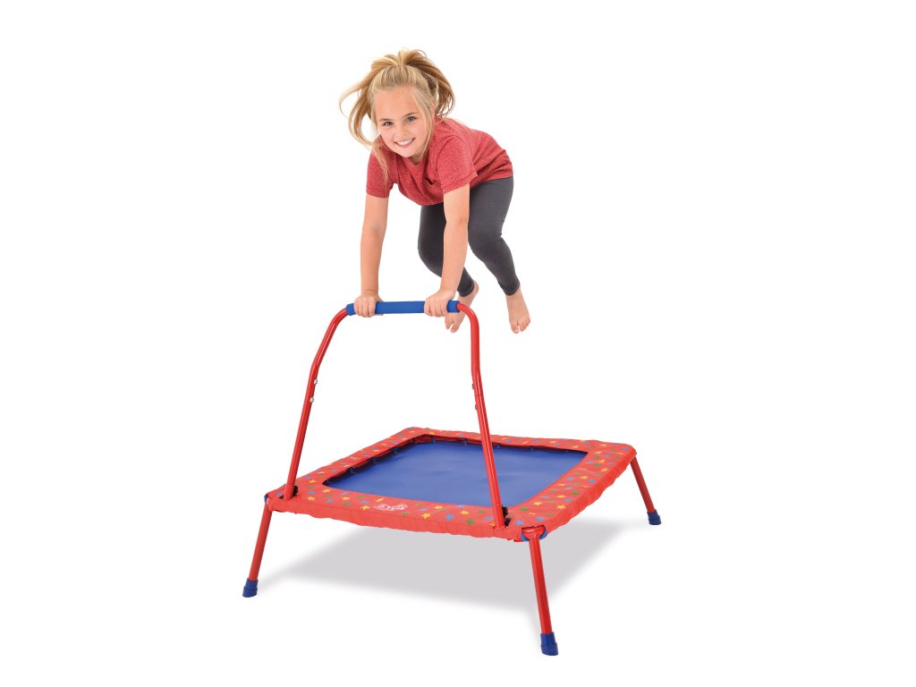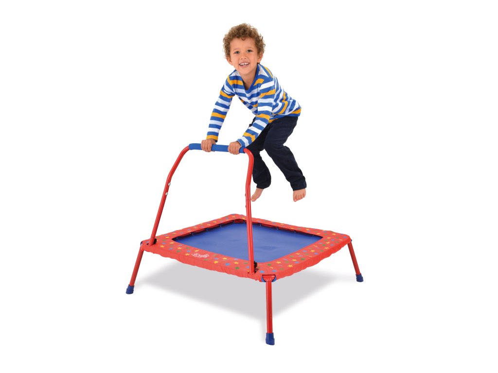 Trampolína má snadno ovládatelné držadlo, které usnadní první skákání. Trampolína je vhodná jak pro domácí tak i venkovní použití, je vyrobena z kvalitního klimaticky odolného materiálu a ocelová konstrukce je potažena lakem.Pro větší bezpečnost je držadlo a kostra trampolíny potaženy měkkým čalouněním, které ochrání děti před propadnutím mezi lanky.Trampolína se snadno složí a může se uschovat pod postel, do skříně či do garáže. Držadlo se odšroubuje a nohy trampolíny se složí.