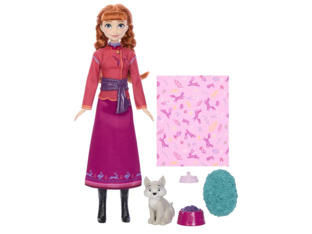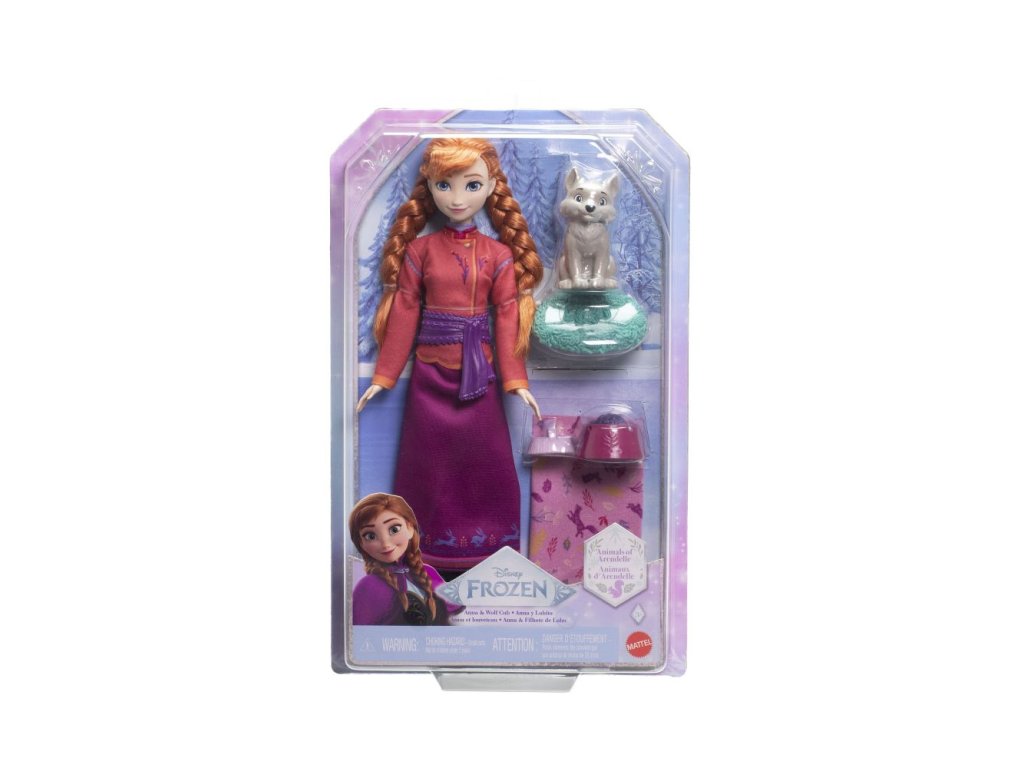 Děti se mohou přidat k Anně a postarat se o jejího roztomilého zvířecího kamaráda! Tento set z Ledového království obsahuje malou figurku vlčete a pět doplňků, které podporují hru na péči – včetně mističky, která se otočením promění na jídlo nebo vodu. Anna má na sobě látkové šaty s páskem a stylové boty. Panenka neumí samostatně stát. Barvy a vzhled výrobku se mohou lišit.