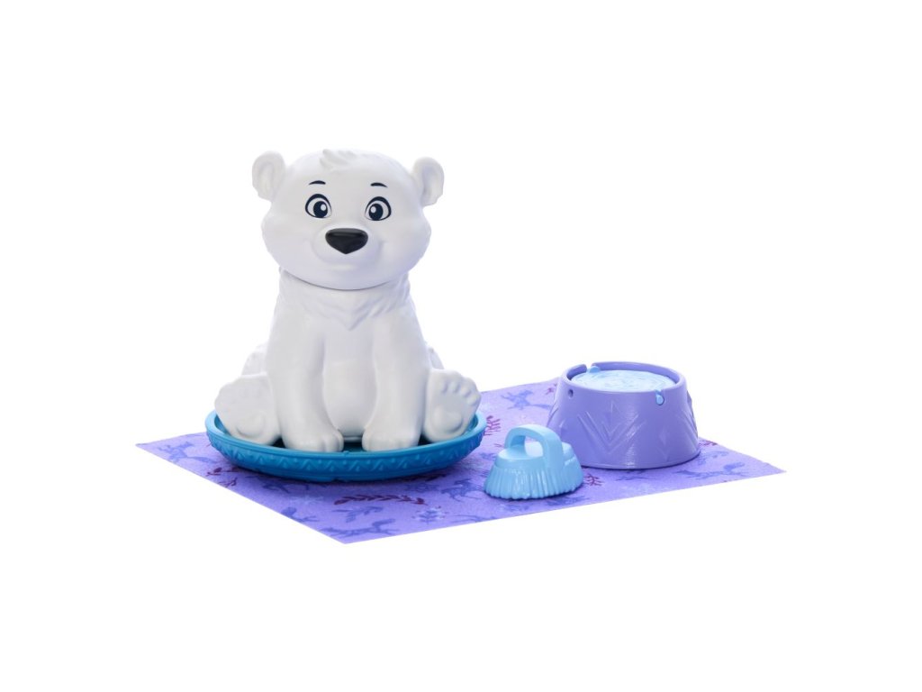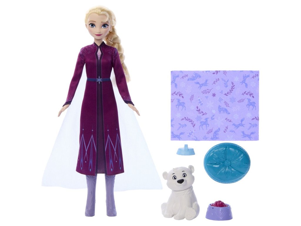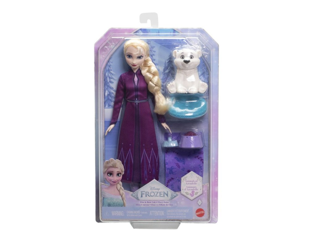 S tímto kouzelným setem si děti užijí spoustu zábavy při péči o roztomilého ledního medvídka. Elsa přichází ve stylových šatech s pláštíkem a botami a nechybí ani pět doplňků, které podporují hru na pečování – třeba mistička, která se otočením promění na jídlo nebo vodu. Panenka neumí samostatně stát. Barvy a vzhled výrobku se mohou lišit.