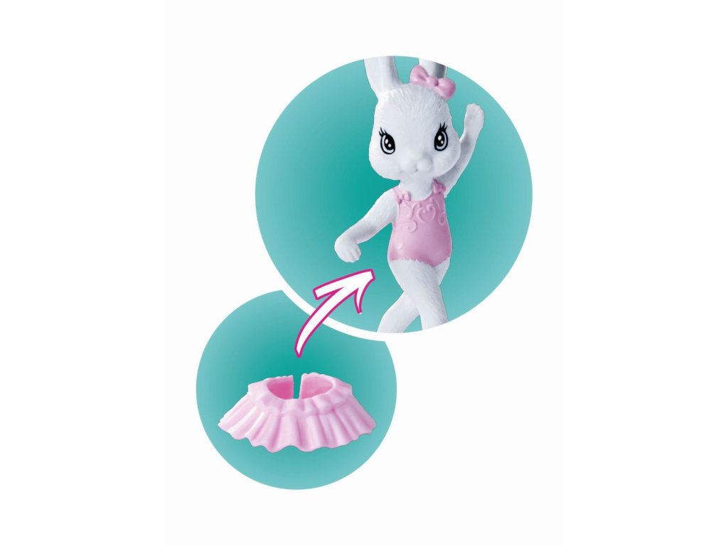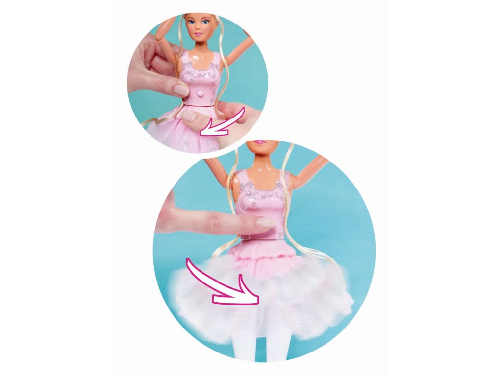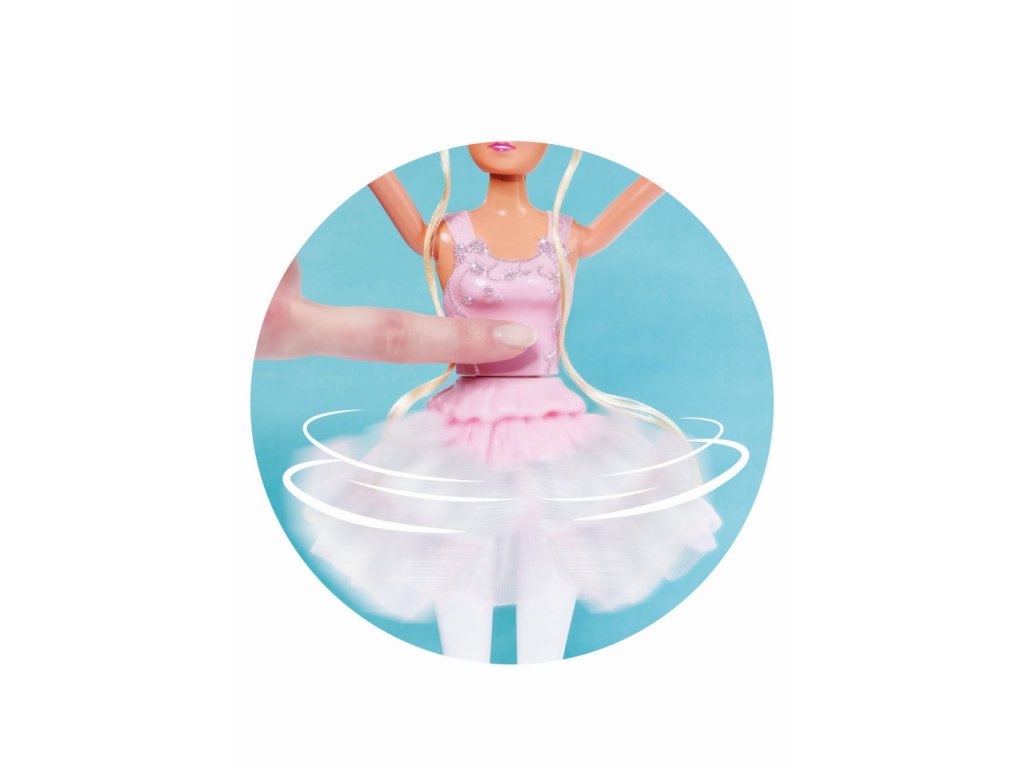 Panenka Steffi jako baletka s točící se sukní, s taneční kamarádkou králíčkem. Velikost panenky 29 cm.