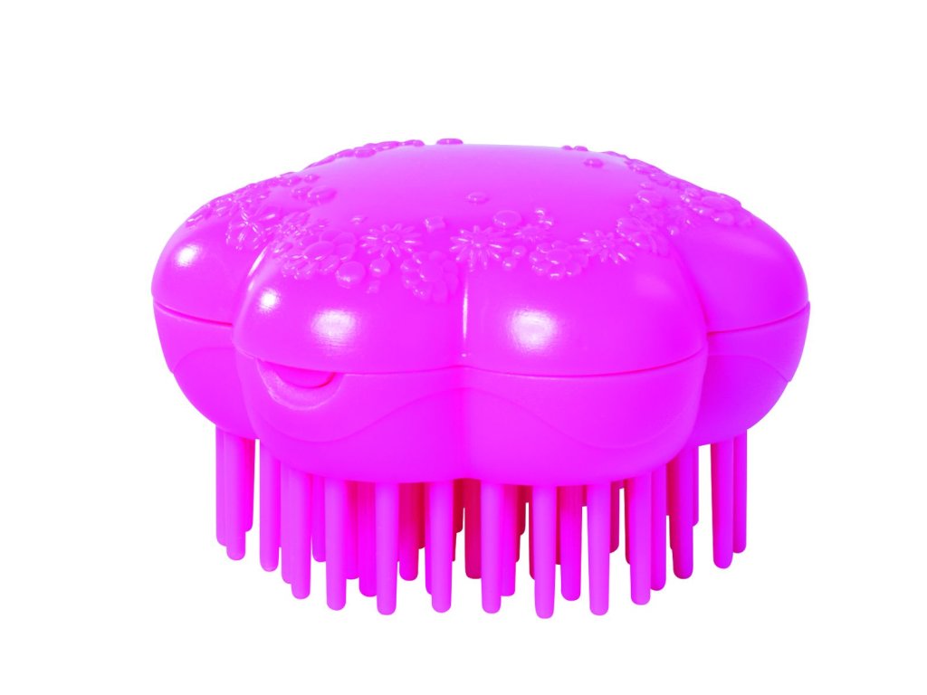 Panenka Steffi v kytičkovém dvoudílném outfitu, s háčkem na navlékání korálku na pramen vlasů, barevnými korálky, gumou na fixaci a hřebenem s úložným prostorem. Výška panenky 29 cm.