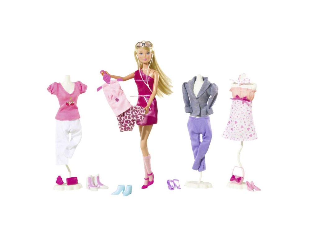 Panenka Steffi se spoustou oblečků a příslušenství pro každou příležitost. Celkem obsahuje 45 ks. Výška panenky 29 cm.