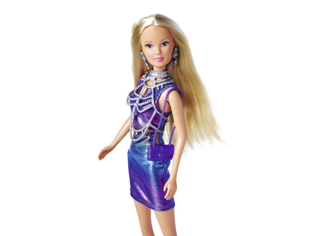 Panenka Steffi se super třpytivými šaty a modními doplňky. Velikost panenky 29 cm.