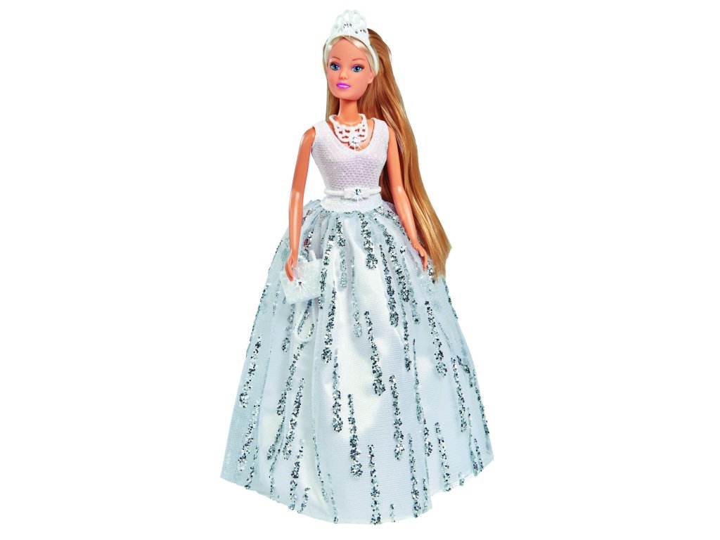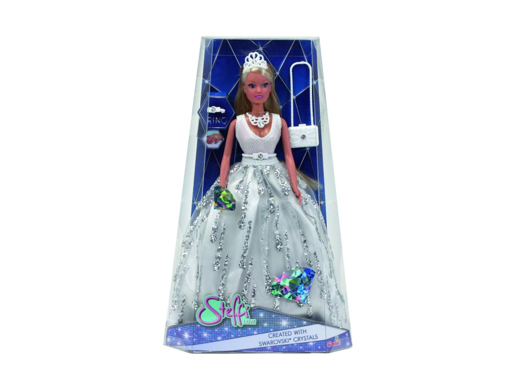 Panenka Steffi v nádherných třpytivých šatech s náhrdelníkem Swarovski, páskem, tiaraou a kabelkou a prstýnkem pro holčičku. Velikost 29 cm.