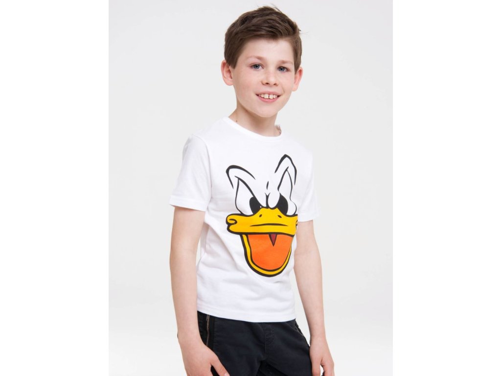 Oficiální dětské tričko z katalogu produktů s logem, fotografiemi a grafikou Donald Duck a licencí společnosti Disney.