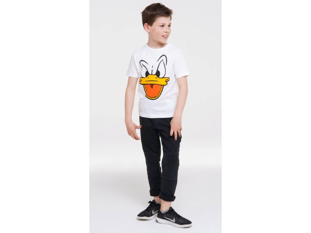 Oficiální dětské tričko z katalogu produktů s logem, fotografiemi a grafikou Donald Duck a licencí společnosti Disney.