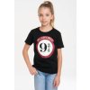 Dětské černé tričko s krátkým rukávem a motivem Nástupiště 9 a 3/4 na přední straně.
